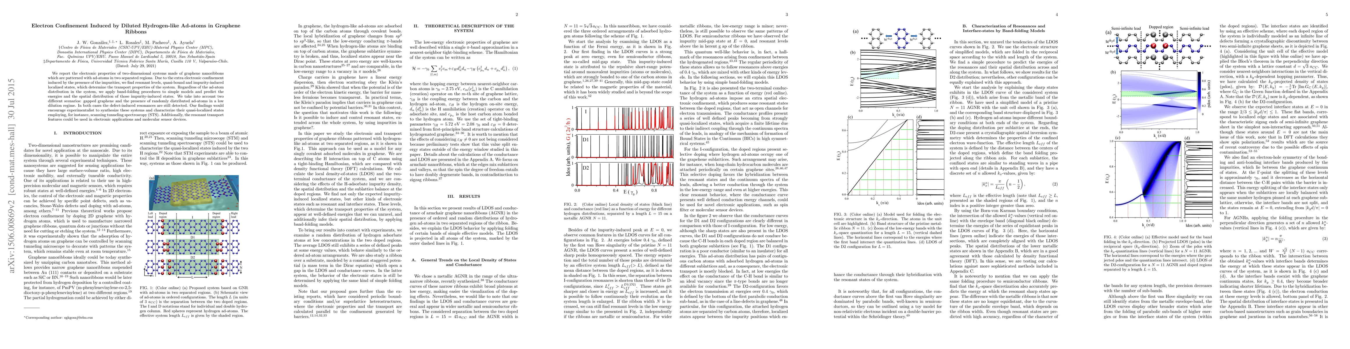 This paper investigates the electronic properties of graphene nanoribbons patterned with diluted hydrogen-like ad-atoms, revealing resonant levels and localized states due to electron confinement. The study predicts impurity-induced states and their energies, applicable to both gapped graphene and low-dilution ad-atom distributions, suggesting potential for electronic applications and molecular sensors.