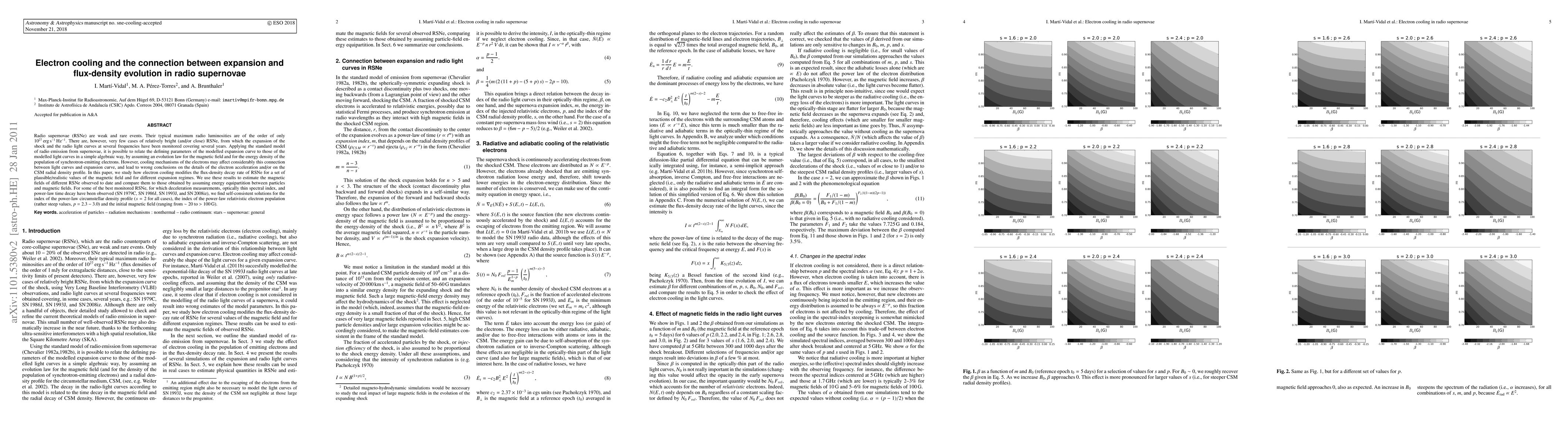 Radio supernovae (RSNe) are weak and rare events. Their typical maximum radio luminosities are of the order of only $10^{27}$\,erg\,s$^{-1}$\,Hz$^{-1}$. There are, however, very few cases of relatively bright (and/or close) RSNe, from which the expansion of the shock and the radio light curves at several frequencies have been monitored covering several years. Applying the standard model of radio emission from supernovae, it is possible to relate the defining parameters of the modelled expansion curve to those of the modelled light curves in a simple algebraic way, by assuming an evolution law for the magnetic field and for the energy density of the population of synchrotron-emitting electrons. However, cooling mechanisms of the electrons may affect considerably this connection between light curves and expansion curve, and lead to wrong conclusions on the details of the electron acceleration and/or on the CSM radial density profile. In this paper, we study how electron cooling modifies the flux-density decay rate of RSNe for a set of plausible/realistic values of the magnetic field and for different expansion regimes. We use these results to estimate the magnetic fields of different RSNe observed to date and compare them to those obtained by assuming energy equipartition between particles and magnetic fields. For some of the best monitored RSNe, for which deceleration measurements, optically thin spectral index, and power-law time decay have been observed (SN\,1979C, SN\,1986J, SN\,1993J, and SN\,2008iz), we find self-consistent solutions for the index of the power-law circumstellar density profile ($s=2$ for all cases), the index of the power-law relativistic electron population (rather steep values, $ p = 2.3 - 3.0$) and the initial magnetic field (ranging from $\sim 20$ to $> 100$\,G).
