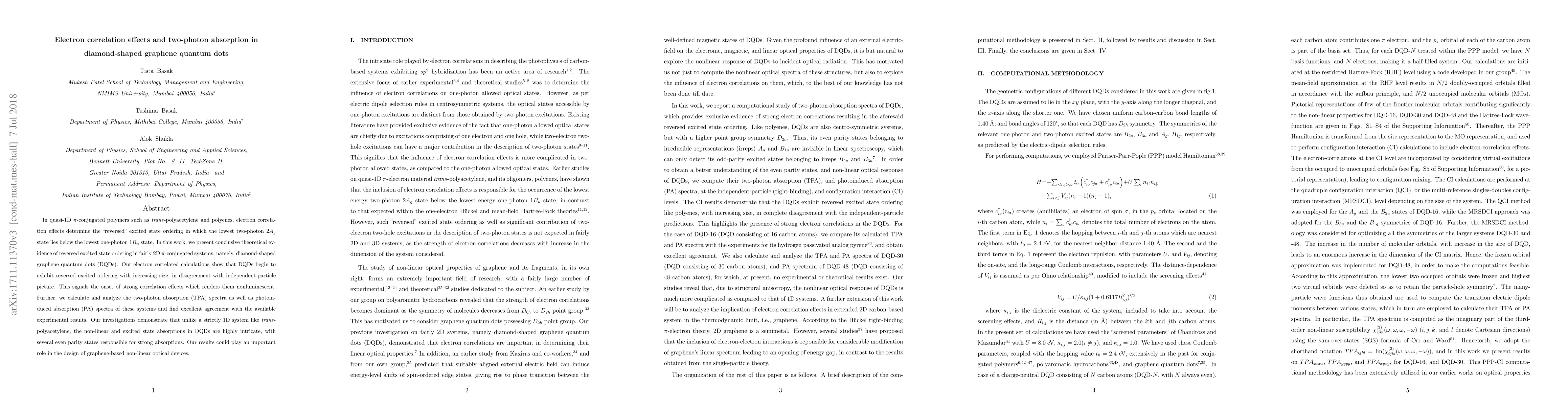This paper presents theoretical evidence of reversed excited state ordering in diamond-shaped graphene quantum dots (DQDs) due to electron correlation effects, which contrasts with independent-particle models. The study also reveals intricate two-photon absorption spectra in DQDs, suggesting potential for designing non-linear optical devices.