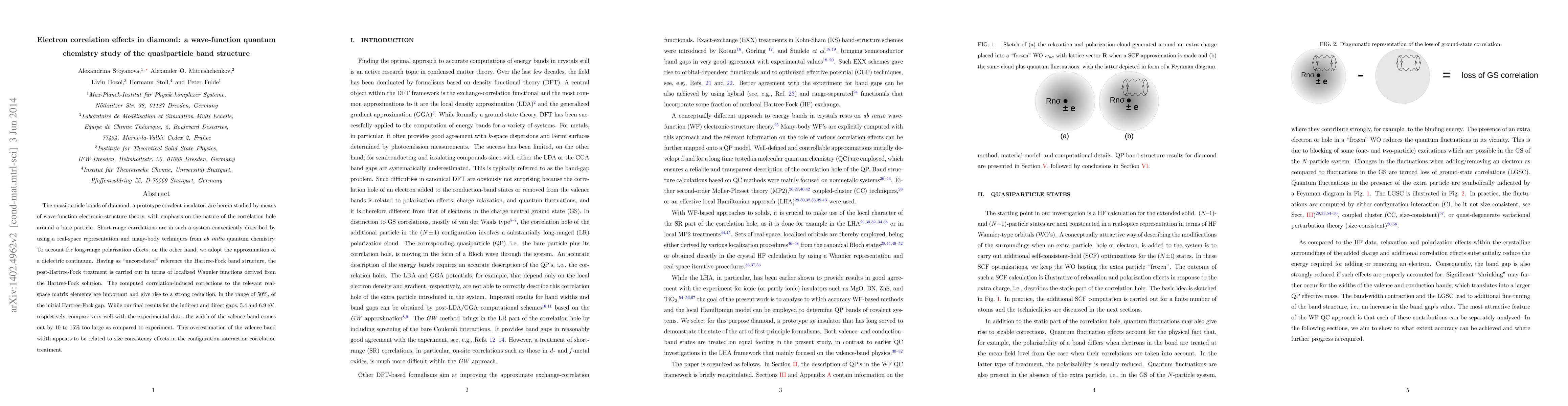 The quasiparticle bands of diamond, a prototype covalent insulator, are herein studied by means of wave-function electronic-structure theory, with emphasis on the nature of the correlation hole around a bare particle. Short-range correlations are in such a system conveniently described by using a real-space representation and many-body techniques from {\it ab initio} quantum chemistry. To account for long-range polarization effects, on the other hand, we adopt the approximation of a dielectric continuum. Having as "uncorrelated" reference the Hartree-Fock band structure, the post-Hartree-Fock treatment is carried out in terms of localized Wannier functions derived from the Hartree-Fock solution. The computed correlation-induced corrections to the relevant real-space matrix elements are important and give rise to a strong reduction, in the range of $50\%$, of the initial Hartree-Fock gap. While our final results for the indirect and direct gaps, 5.4 and 6.9 eV, respectively, compare very well with the experimental data, the width of the valence band comes out by $10$ to $15\%$ too large as compared to experiment. This overestimation of the valence-band width appears to be related to size-consistency effects in the configuration-interaction correlation treatment.