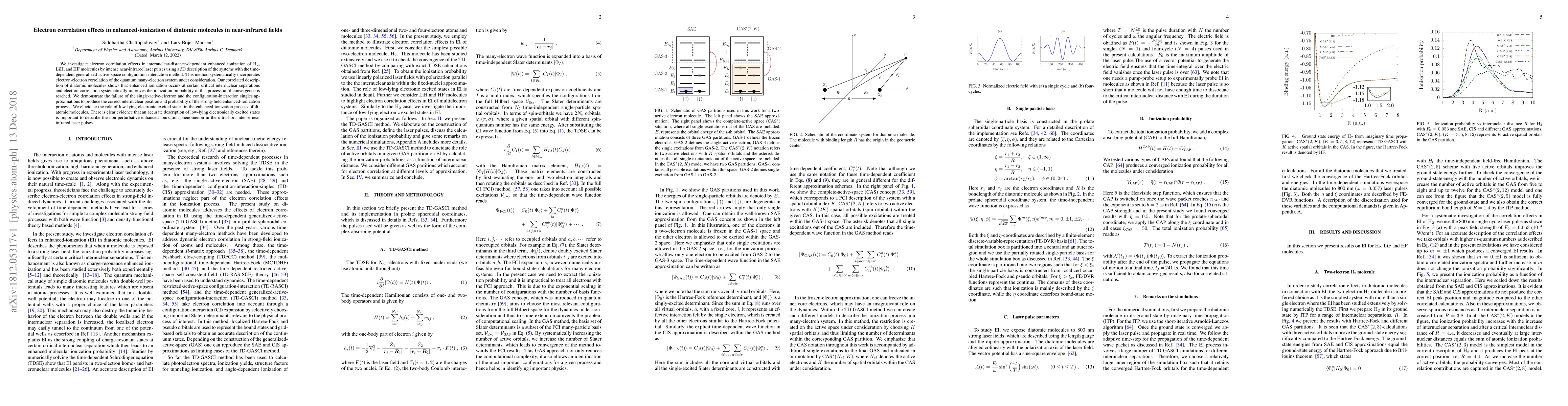 The research employs the time-dependent generalized-active-space configuration-interaction (TD-GASCI) method, a 3D description that systematically incorporates electron-electron correlation for diatomic molecules. This method uses prolate spheroidal coordinates and a finite-element discrete-variable representation (FE-DVR) for the coordinates.