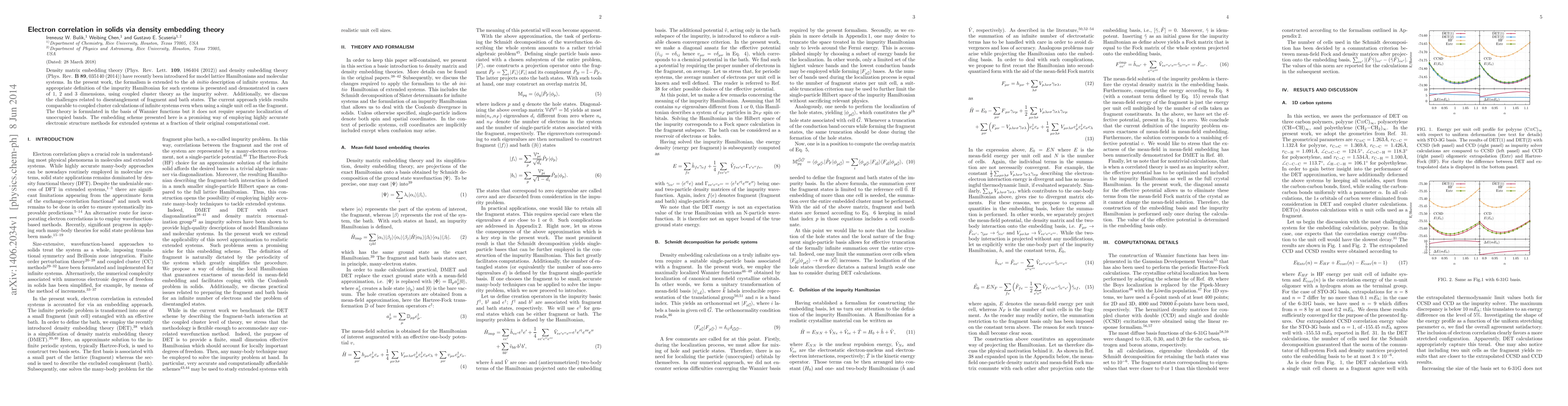 Density matrix embedding theory (Phys. Rev. Lett. 109, 186404 (2012)) and density embedding theory ((Phys. Rev. B 89, 035140 (2014)) have recently been introduced for model lattice Hamiltonians and molecular systems. In the present work, the formalism is extended to the ab initio description of infinite systems. An appropriate definition of the impurity Hamiltonian for such systems is presented and demonstrated in cases of 1, 2 and 3 dimensions, using coupled cluster theory as the impurity solver. Additionally, we discuss the challenges related to disentanglement of fragment and bath states. The current approach yields results comparable to coupled cluster calculations of infinite systems even when using a single unit cell as the fragment. The theory is formulated in the basis of Wannier functions but it does not require separate localization of unoccupied bands. The embedding scheme presented here is a promising way of employing highly accurate electronic structure methods for extended systems at a fraction of their original computational cost.
