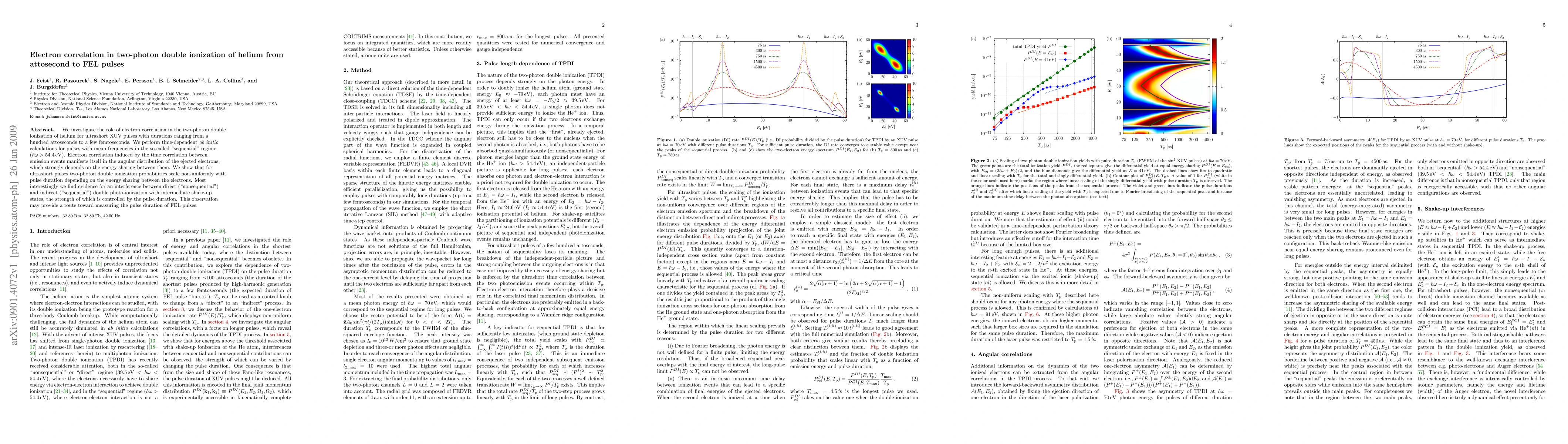 The study investigates electron correlation in two-photon double ionization of helium using time-dependent ab initio calculations for ultrashort XUV pulses with durations ranging from a hundred attoseconds to a few femtoseconds.