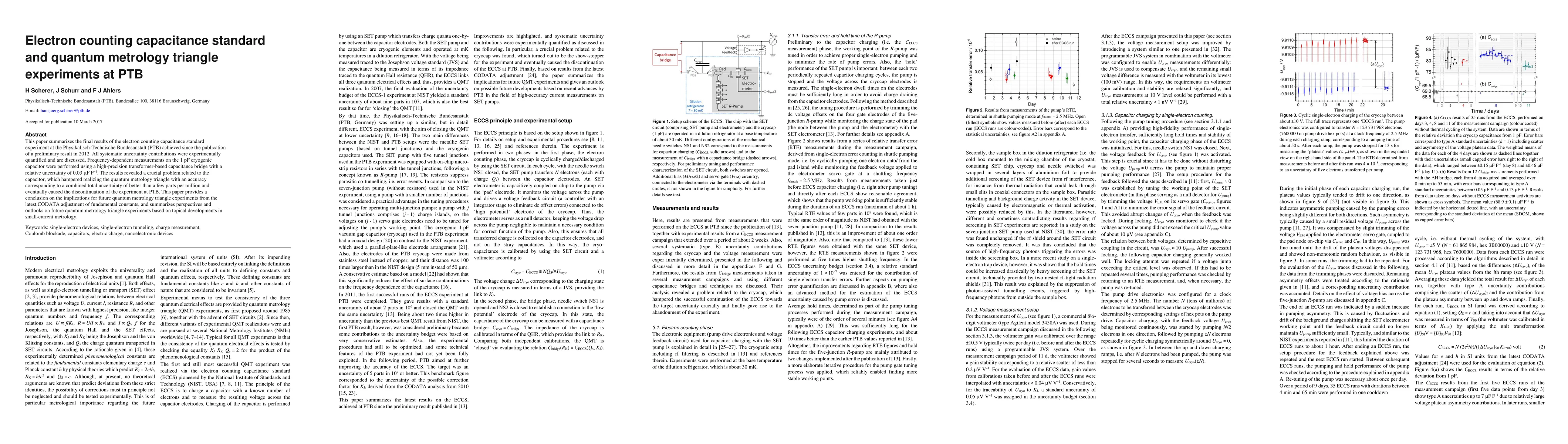 This paper summarizes the final results of the electron counting capacitance standard experiment at the Physikalisch-Technische Bundesanstalt (PTB) achieved since the publication of a preliminary result in 2012. All systematic uncertainty contributions were experimentally quantified and are discussed. Frequency-dependent measurements on the 1 pF cryogenic capacitor were performed using a high-precision transformer-based capacitance bridge with a relative uncertainty of 0.03 microF/F. The results revealed a crucial problem related to the capacitor, which hampered realizing the quantum metrology triangle with an accuracy corresponding to a combined total uncertainty of better than a few parts per million and eventually caused the discontinuation of the experiment at PTB. This paper provides a conclusion on the implications for future quantum metrology triangle experiments from the latest CODATA adjustment of fundamental constants, and summarizes perspectives and outlooks on future quantum metrology triangle experiments based on topical developments in small-current metrology.
