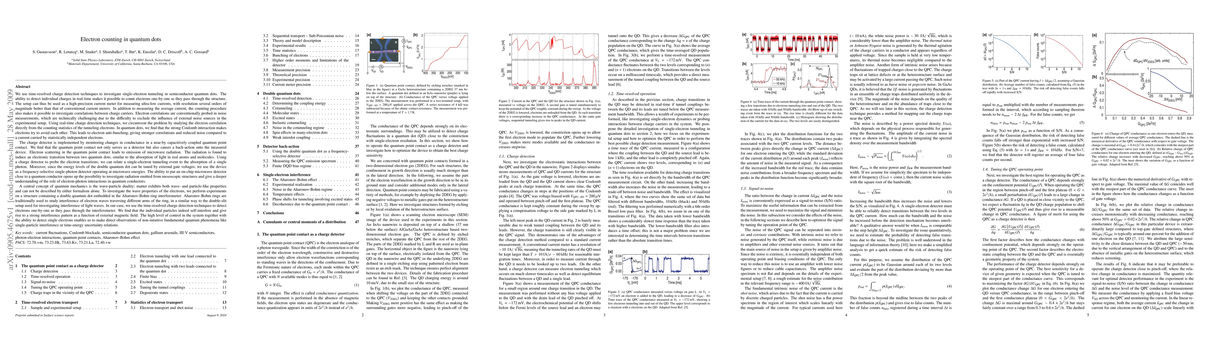 We use time-resolved charge detection techniques to investigate single-electron tunneling in semiconductor quantum dots. The ability to detect individual charges in real-time makes it possible to count electrons one-by-one as they pass through the structure. The setup can thus be used as a high-precision current meter for measuring ultra-low currents, with resolution several orders of magnitude better than that of conventional current meters. In addition to measuring the average current, the counting procedure also makes it possible to investigate correlations between charge carriers. In quantum dots, we find that the strong Coulomb interaction makes electrons try to avoid each other. This leads to electron anti-bunching, giving stronger correlations and reduced noise compared to a current carried by statistically independent electrons. The charge detector is implemented by monitoring changes in conductance in a near-by capacitively coupled quantum point contact. We find that the quantum point contact not only serves as a detector but also causes a back-action onto the measured device. Electron scattering in the quantum point contact leads to emission of microwave radiation. The radiation is found to induce an electronic transition between two quantum dots, similar to the absorption of light in real atoms and molecules. Using a charge detector to probe the electron transitions, we can relate a single-electron tunneling event to the absorption of a single photon. Moreover, since the energy levels of the double quantum dot can be tuned by external gate voltages, we use the device as a frequency-selective single-photon detector operating at microwave energies.