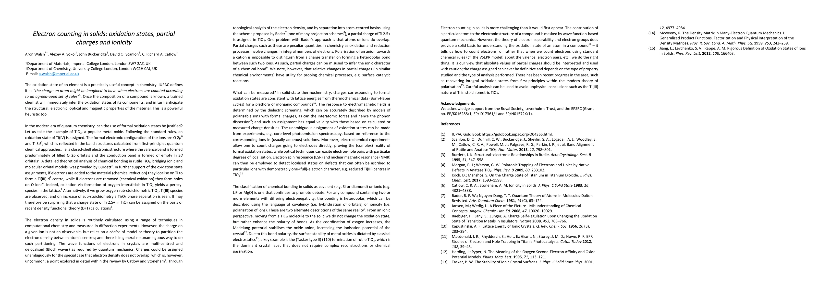 In this short viewpoint, we discuss the assignment of ionic charges in solids. We argue that formal oxidation states serve a useful function, and that absolute values of partial charges should be interpreted and applied with caution; the charge assigned can never be definitive and depends on the type of property studied and the type of analysis performed. Careful analysis can be used to avoid unphysical conclusions such as a recent report on the Ti(III) nature of Ti in stoichiometric TiO$_2$.