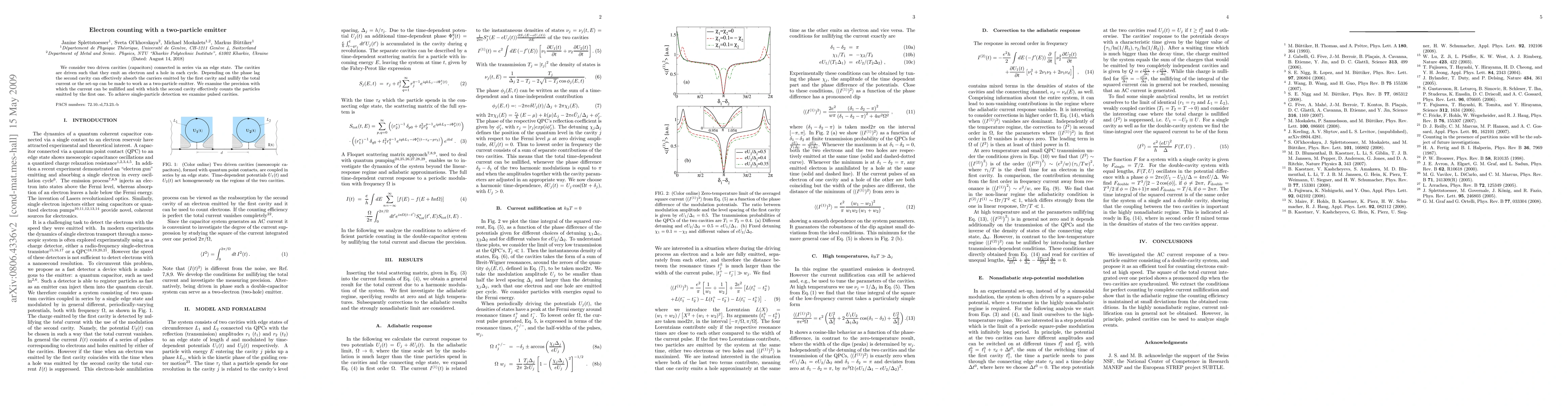 We consider two driven cavities (capacitors) connected in series via an edge state. The cavities are driven such that they emit an electron and a hole in each cycle. Depending on the phase lag the second cavity can effectively absorb the carriers emitted by the first cavity and nullify the total current or the set-up can be made to work as a two-particle emitter. We examine the precision with which the current can be nullified and with which the second cavity effectively counts the particles emitted by the first one. To achieve single-particle detection we examine pulsed cavities.