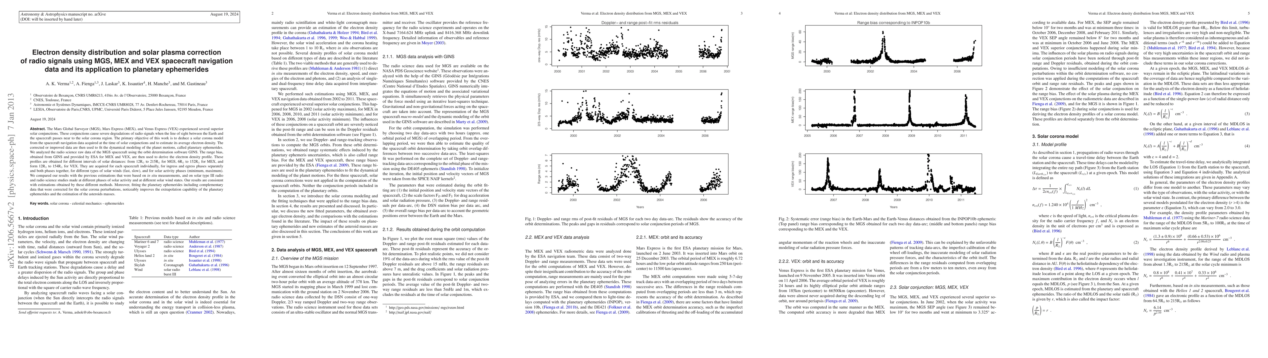 Researchers used spacecraft navigation data to correct radio signals affected by solar corona regions, improving planetary ephemerides accuracy and asteroid mass estimates.