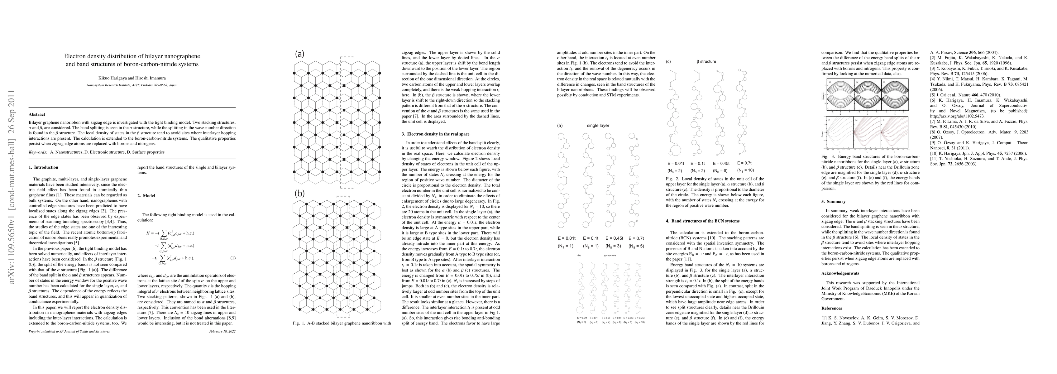 Bilayer graphene nanoribbon with zigzag edge is investigated with the tight binding model. Two stacking structures, alpha and beta, are considered. The band splitting is seen in the alpha structure, while the splitting in the wave number direction is found in the beta structure. The local density of states in the beta structure tend to avoid sites where interlayer hopping interactions are present. The calculation is extended to the boron-carbon-nitride systems. The qualitative properties persist when zigzag edge atoms are replaced with borons and nitrogens.