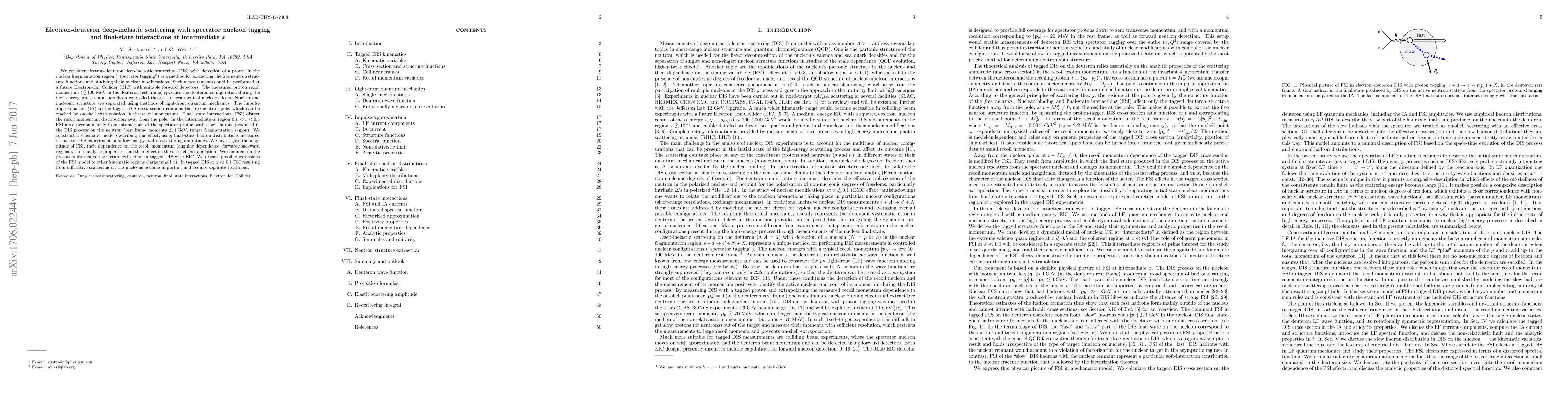 This paper explores electron-deuteron deep-inelastic scattering with spectator proton tagging to extract free neutron structure functions, addressing nuclear modifications and final-state interactions. The study uses a schematic model to analyze the impact of these interactions in the intermediate-x region, providing insights into neutron structure extraction prospects at future EIC experiments.