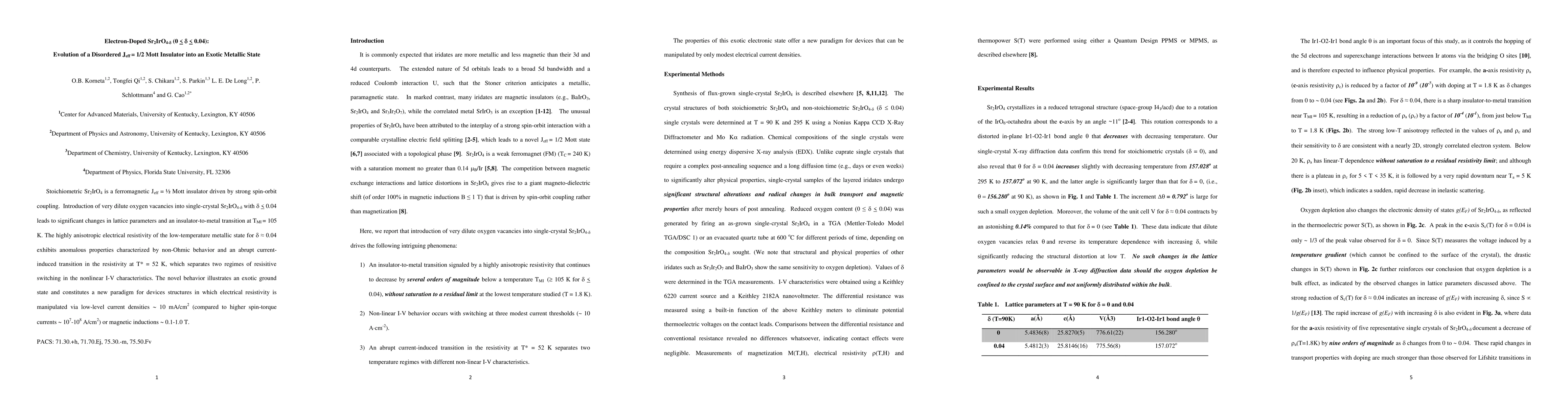 This study investigates the effects of dilute oxygen vacancies in electron-doped Sr2IrO4-delta, showing an insulator-to-metal transition and unusual resistive switching behavior at low temperatures. The transition and non-Ohmic electrical properties suggest a new paradigm for low-current density resistive manipulation.