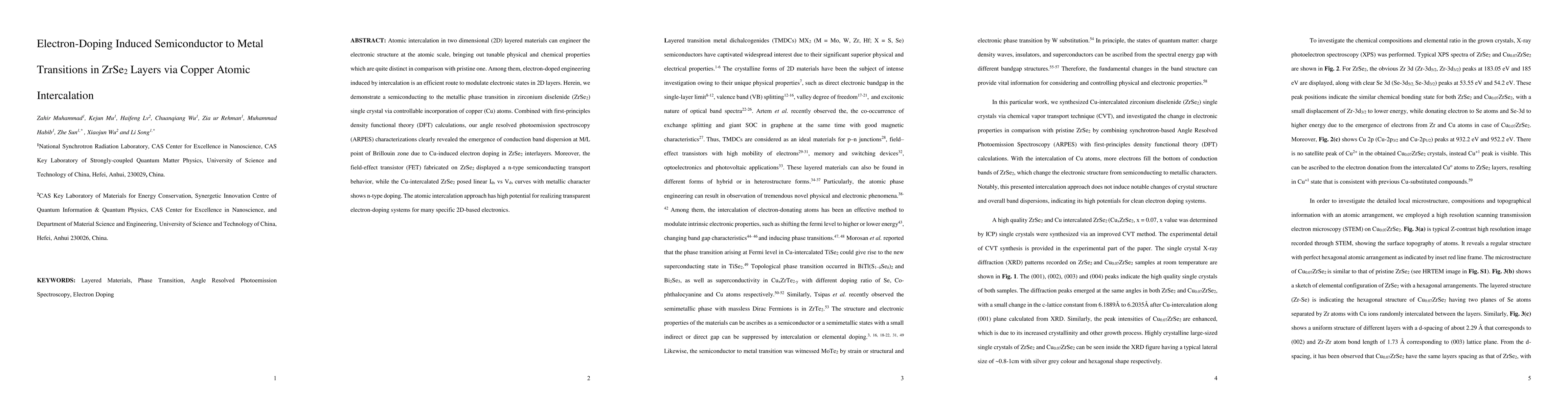 Researchers demonstrate a semiconductor to metal transition in ZrSe2 via copper atomic intercalation, enabling tunable electronic properties through controllable electron doping.