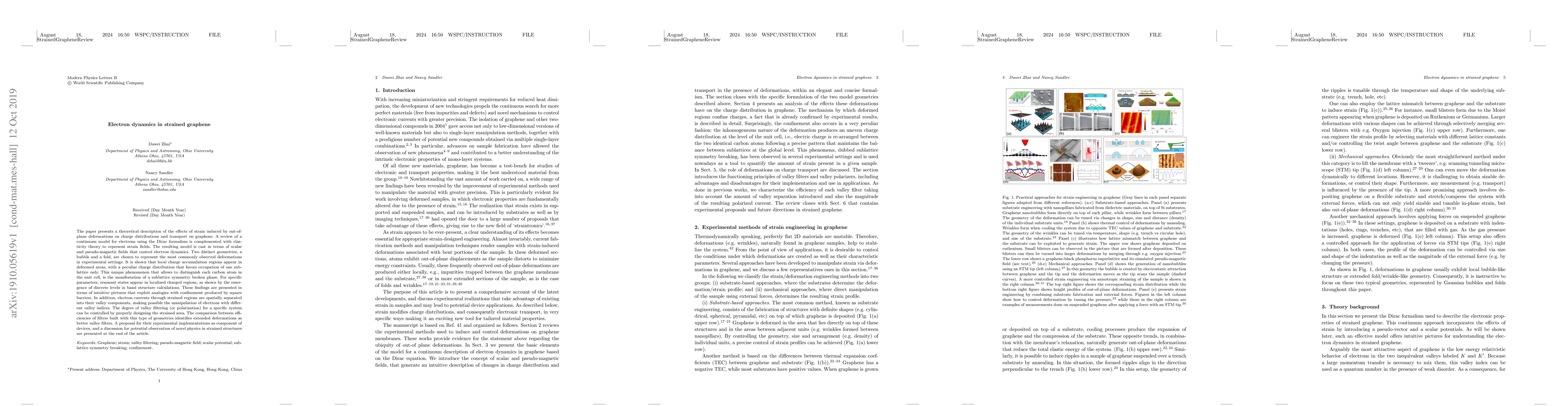 The paper presents a theoretical description of the effects of strain induced by out-of-plane deformations on charge distributions and transport on graphene. A review of a continuum model for electrons using the Dirac formalism is complemented with elasticity theory to represent strain fields. The resulting model is cast in terms of scalar and pseudo-magnetic fields that control electron dynamics. Two distinct geometries, a bubble, and a fold are chosen to represent the most commonly observed deformations in experimental settings. It is shown that local charge accumulation regions appear in deformed areas, with a peculiar charge distribution that favors the occupation of one sublattice only. This unique phenomenon that allows distinguishing each carbon atom in the unit cell, is the manifestation of a sublattice symmetry broken phase. For specific parameters, resonant states appear in localized charged regions, as shown by the emergence of discrete levels in band structure calculations. These findings are presented in terms of intuitive pictures that exploit analogies with confinement produced by square barriers. In addition, electron currents through strained regions are spatially separated into their valley components, making possible the manipulation of electrons with different valley indices. The degree of valley filtering (or polarization) for a specific system can be controlled by properly designing the strained area. The comparison between efficiencies of filters built with this type of geometries identifies extended deformations as better valley filters. A proposal for their experimental implementations as a component of devices and a discussion for potential observation of novel physics in strained structures are presented at the end of the article.