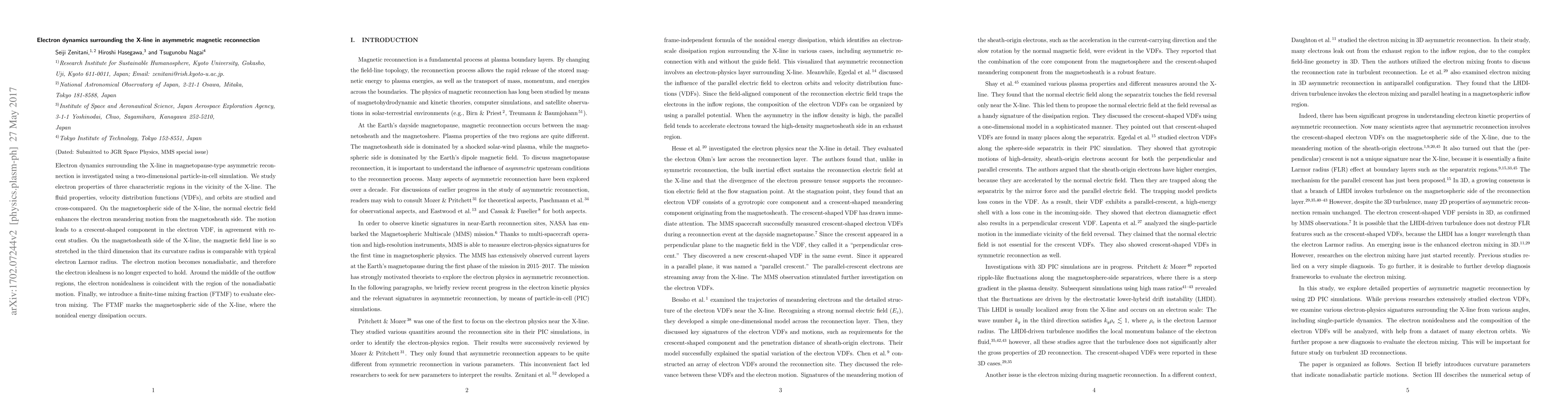 This study uses particle-in-cell simulations to investigate electron dynamics near the X-line in asymmetric magnetic reconnection, revealing distinct electron behavior in three regions: crescent-shaped velocity distributions on the magnetospheric side, nonadiabatic motion on the magnetosheath side, and nonideal energy dissipation marked by a finite-time mixing fraction.