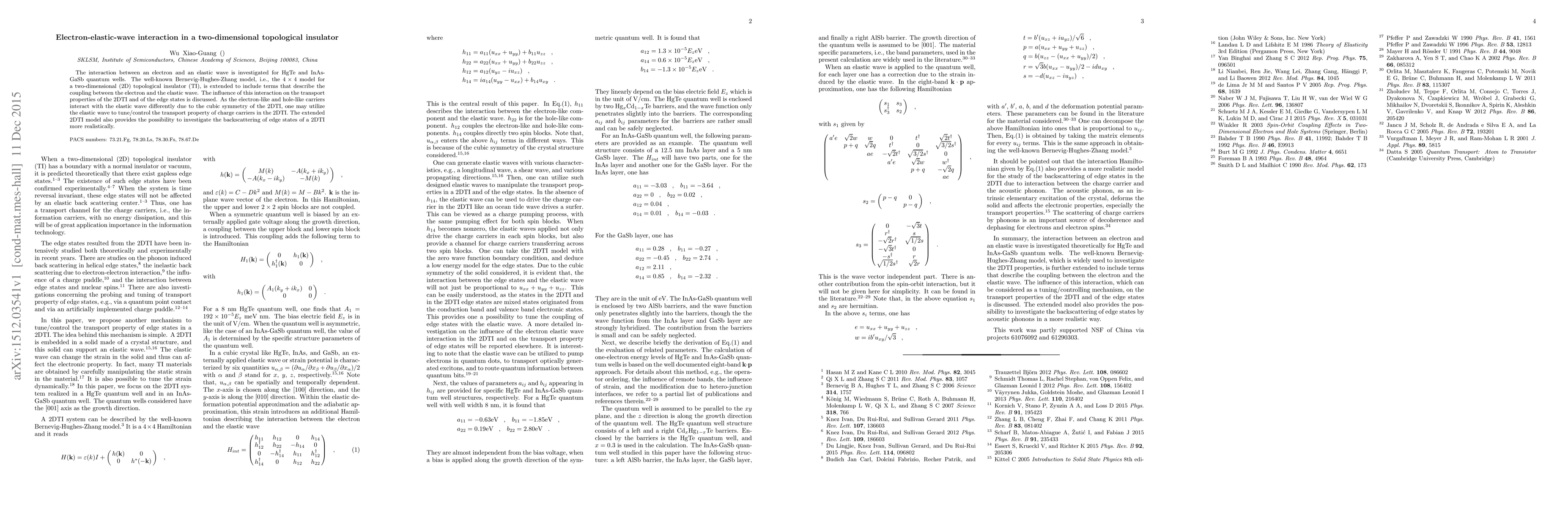 The interaction between an electron and an elastic wave is investigated for HgTe and InAs-GaSb quantum wells. The well-known Bernevig-Hughes-Zhang model, i.e., the $4\times 4$ model for a two-dimensional (2D) topological insulator (TI), is extended to include terms that describe the coupling between the electron and the elastic wave. The influence of this interaction on the transport properties of the 2DTI and of the edge states is discussed. As the electron-like and hole-like carriers interact with the elastic wave differently due to the cubic symmetry of the 2DTI, one may utilize the elastic wave to tune/control the transport property of charge carriers in the 2DTI. The extended 2DTI model also provides the possibility to investigate the backscattering of edge states of a 2DTI more realistically.