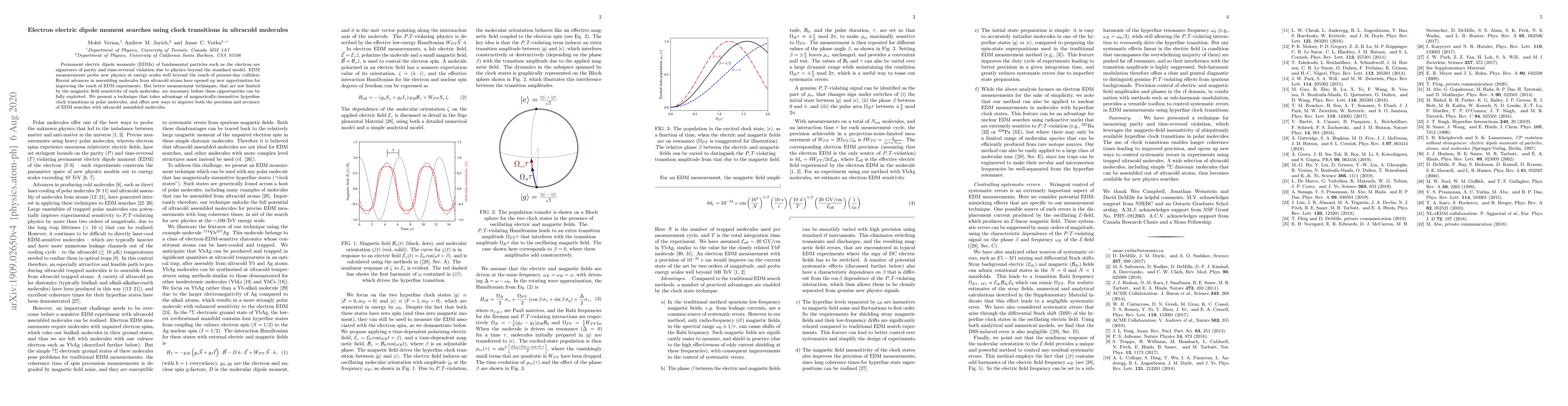 This paper proposes a novel technique for enhancing electron electric dipole moment (EDM) searches using clock transitions in ultracold molecules. By leveraging magnetically-insensitive hyperfine clock transitions, the method aims to improve the precision and accuracy of EDM measurements, potentially probing physics beyond the standard model.