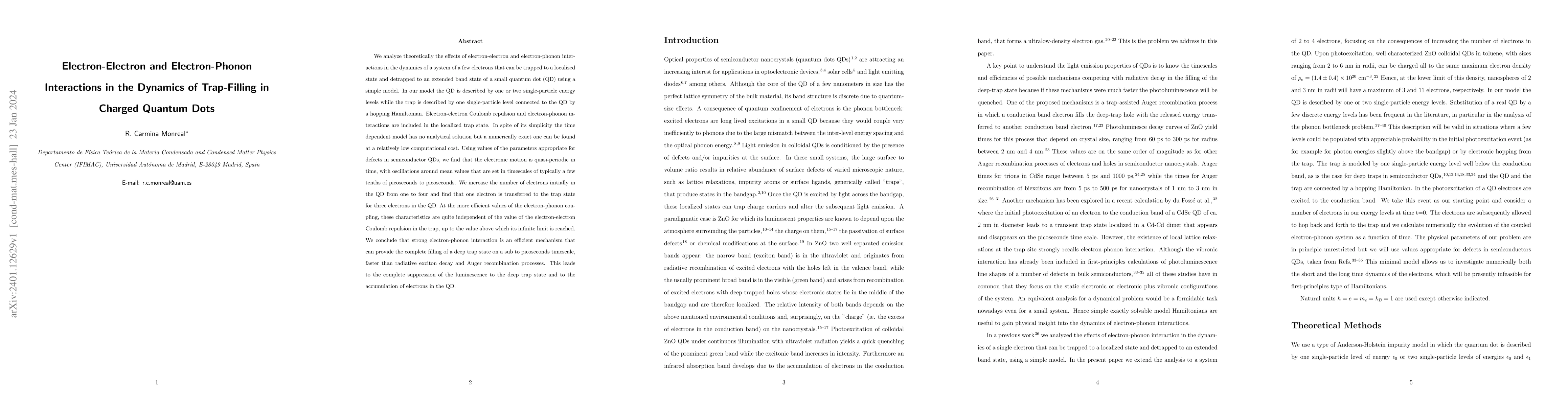 This paper theoretically investigates electron-electron and electron-phonon interactions in a few-electron quantum dot system, finding quasi-periodic electronic motion and efficient trap filling on sub-picosecond timescales. The study concludes that strong electron-phonon interactions can suppress luminescence and promote electron accumulation in the quantum dot.