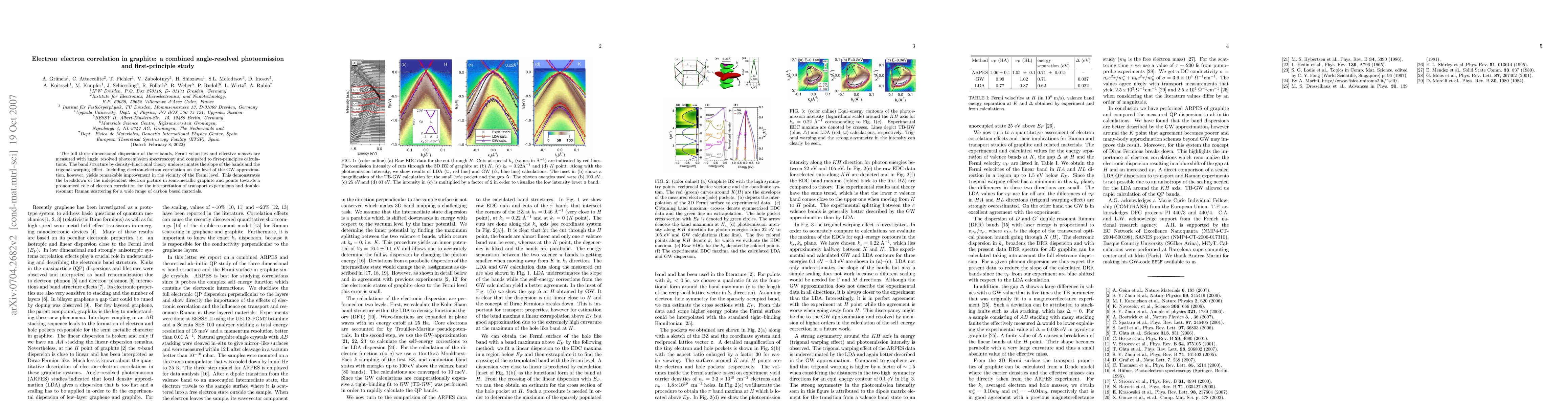 The full three dimensional dispersion of the pi-bands, Fermi velocities and effective masses are measured with angle resolved photoemission spectroscopy and compared to first-principles calculations. The band structure by density-functional theory strongly underestimates the slope of the bands and the trigonal warping effect. Including electron-electron calculation on the level of the GW approximation, however, yields remarkable agreement in the vicinity of the Fermi level. This demonstrates the breakdown of the independent electron picture in semi-metallic graphite and points towards a pronounced role of electron correlation for the interpretation of transport experiments and double-resonant Raman scattering for a wide range of carbon based materials.