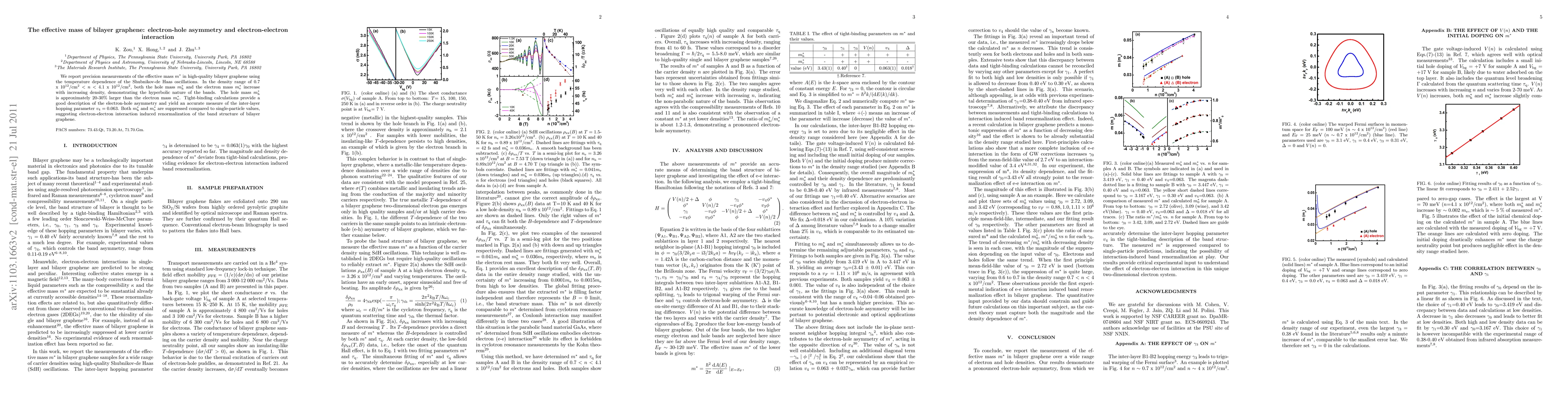 This study investigates the effective mass in bilayer graphene, revealing that both electron and hole masses increase with density and are significantly renormalized due to electron-electron interaction, with the hole mass being 20-30% larger than the electron mass, providing insights into the inter-layer hopping parameter.
