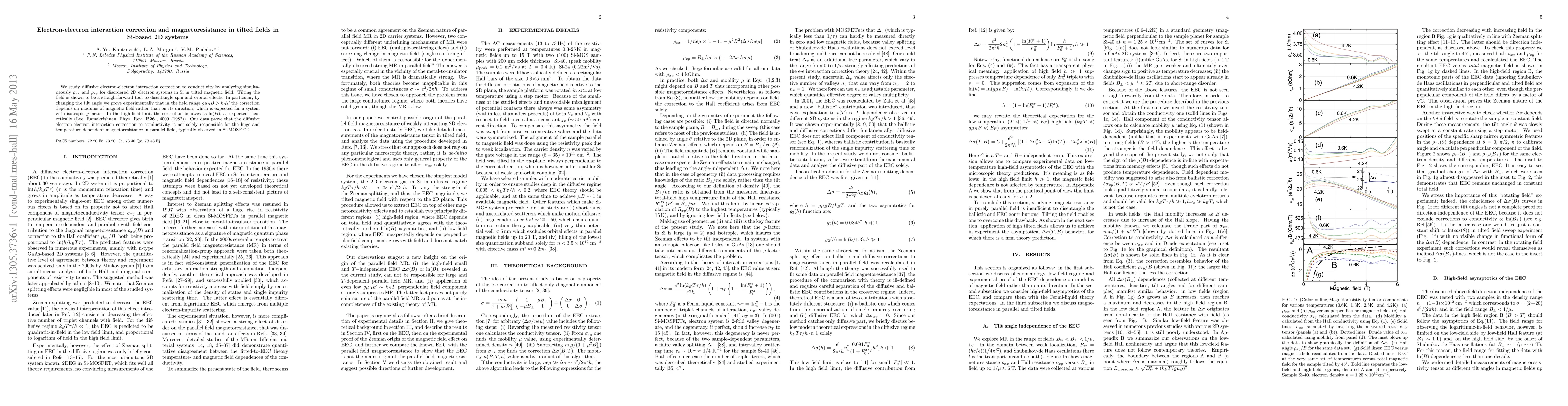 This paper investigates the electron-electron interaction correction to conductivity in Si-based 2D systems under tilted magnetic fields, demonstrating that the correction depends on the magnetic field's modulus rather than its direction. The study reveals that the interaction correction does not account for the large, temperature-dependent magnetoresistance observed in parallel fields.