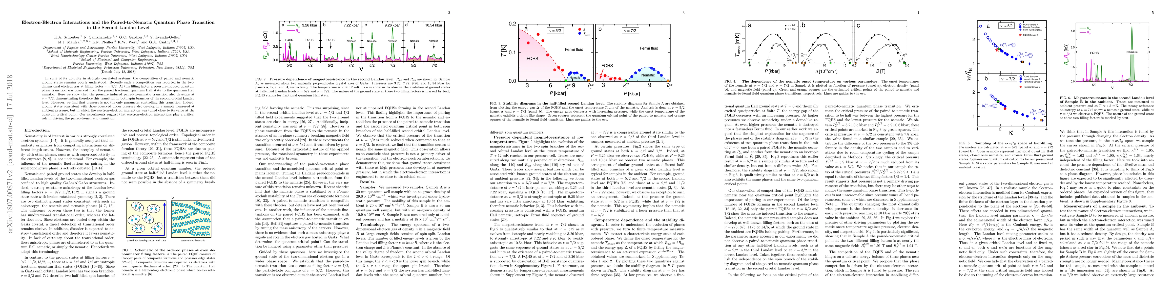This paper investigates the paired-to-nematic quantum phase transition in the second Landau level at filling factors $\nu=5/2$ and $\nu=7/2$, revealing that pressure-induced transitions occur in both spin branches. It finds that electron-electron interactions, rather than just pressure, critically drive this transition.