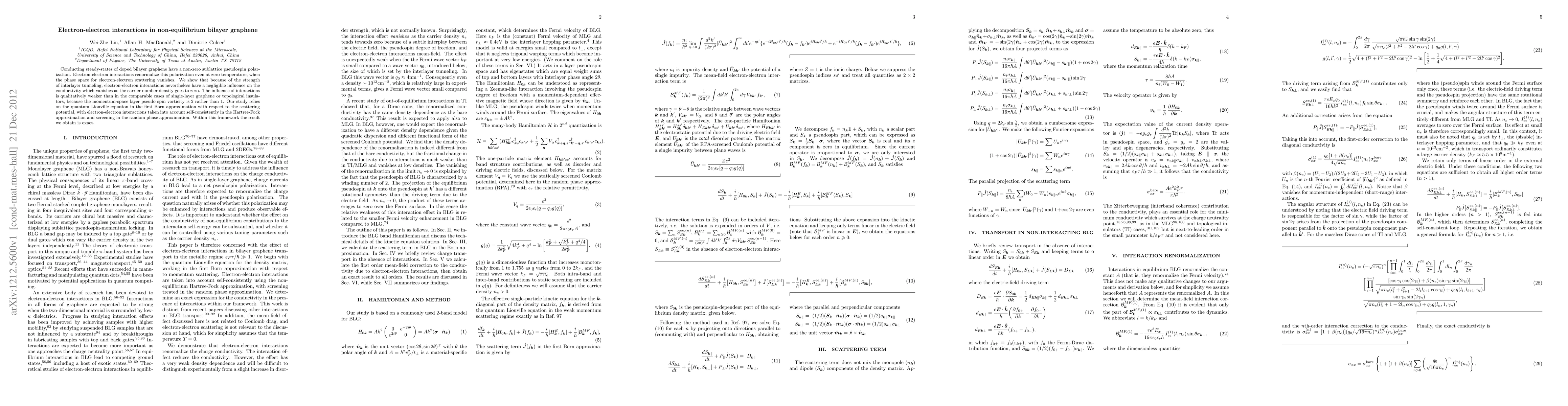 This paper investigates electron-electron interactions in non-equilibrium bilayer graphene, demonstrating that despite interactions renormalizing sublattice pseudospin polarization, their effect on conductivity is negligible due to strong interlayer tunneling. The study finds that interactions are less influential than in single-layer graphene or topological insulators, owing to the higher momentum-space layer pseudospin vorticity in bilayer graphene.
