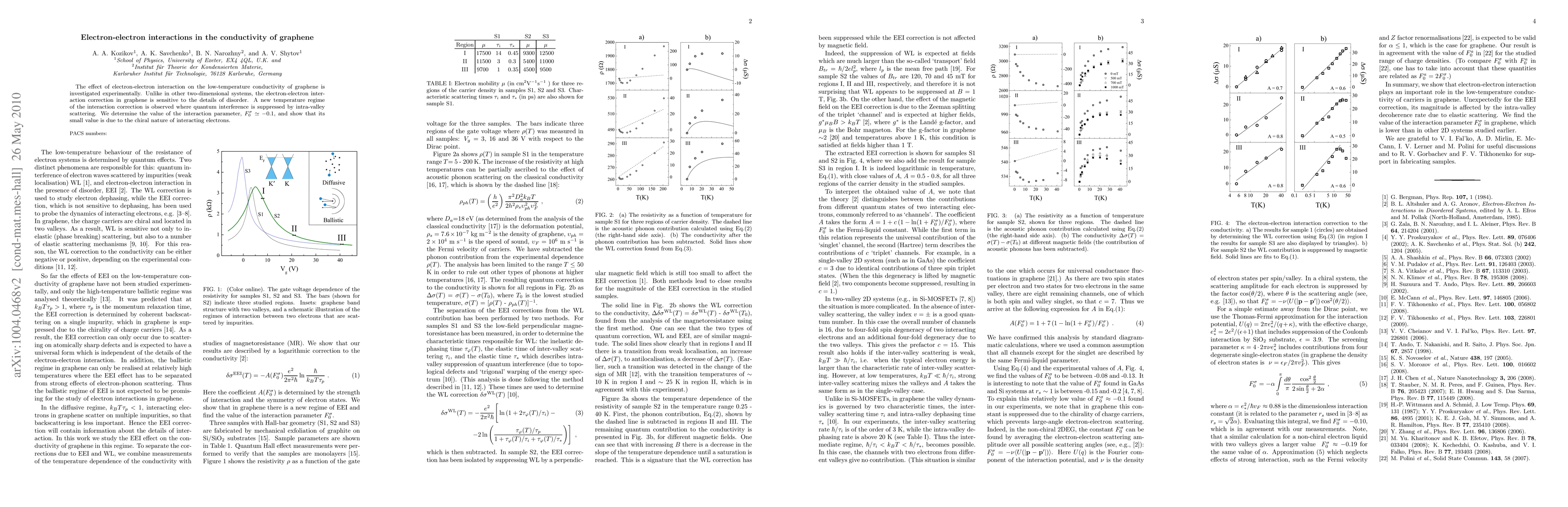 The effect of electron-electron interaction on the low-temperature conductivity of graphene is investigated experimentally. Unlike in other two-dimensional systems, the electron-electron interaction correction in graphene is sensitive to the details of disorder. A new temperature regime of the interaction correction is observed where quantum interference is suppressed by intra-valley scattering. We determine the value of the interaction parameter, F_0 ~ -0.1, and show that its small value is due to the chiral nature of interacting electrons.