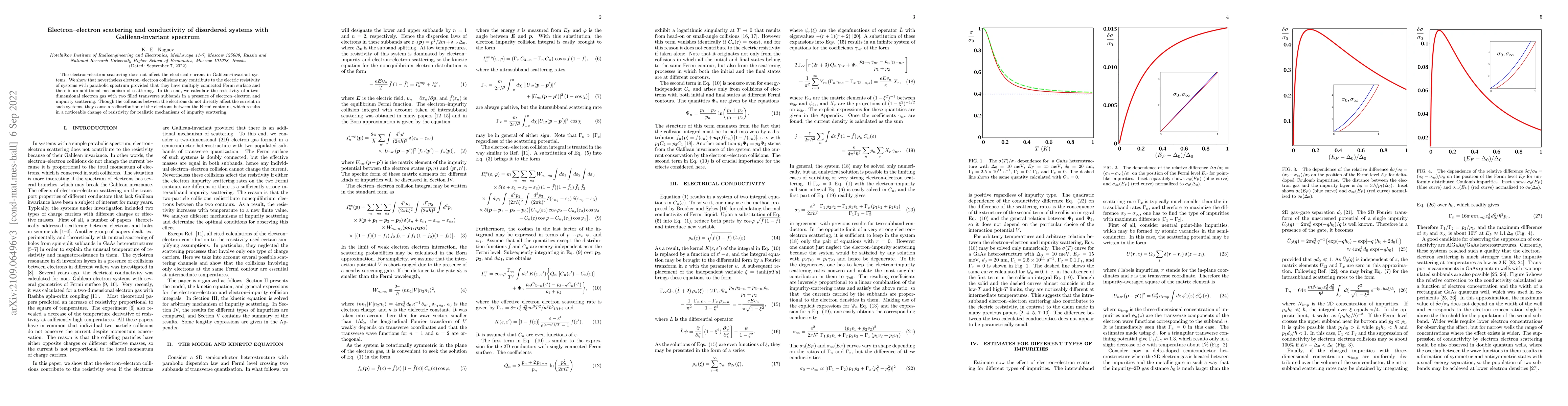 This paper demonstrates that electron-electron scattering does not directly impact current in Galilean-invariant systems but can contribute to resistivity in systems with a parabolic spectrum, especially when the Fermi surface is multiply connected and impurity scattering is present. The study calculates resistivity in a two-dimensional electron gas with two filled subbands under combined electron-electron and impurity scattering.