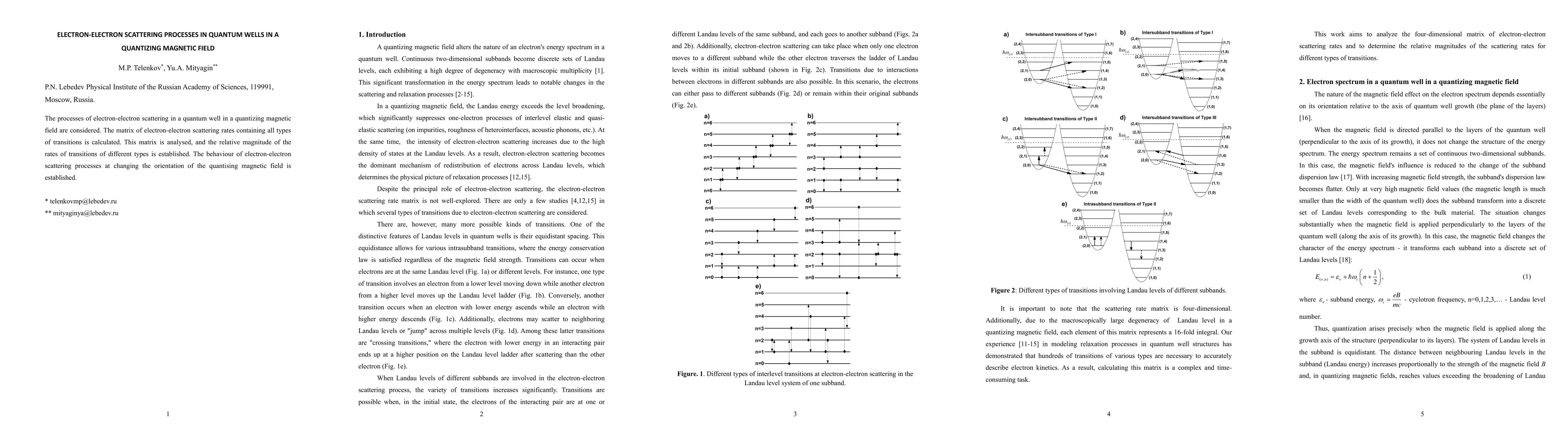 Researchers studied electron-electron scattering in quantum wells under a quantizing magnetic field, calculating a matrix of scattering rates to understand the behavior of different transitions and their relative magnitudes.
