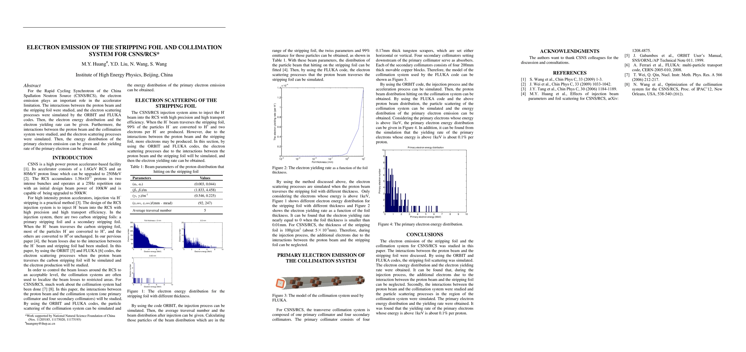 The research utilized the ORBIT and FLUKA codes to simulate electron scattering processes. ORBIT was used to simulate the injection and acceleration processes, while FLUKA was employed to simulate particle scattering in the stripping foil and collimation system.