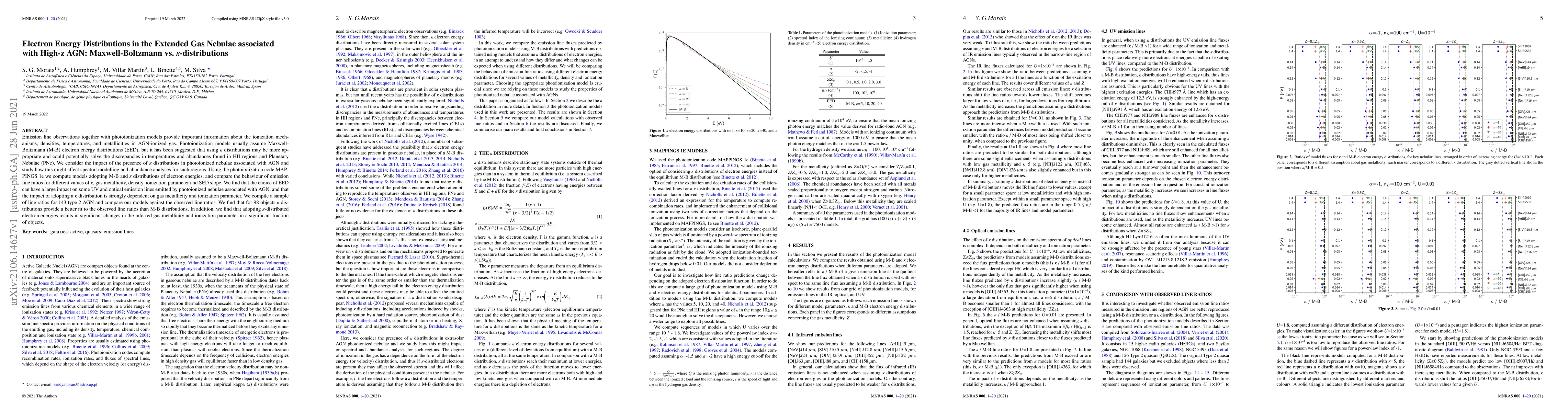This paper investigates electron energy distributions in high-z AGN-associated gas nebulae, comparing Maxwell-Boltzmann and kappa distributions. The study finds that kappa distributions often better fit observed emission line ratios, significantly altering inferred gas metallicity and ionization parameters.