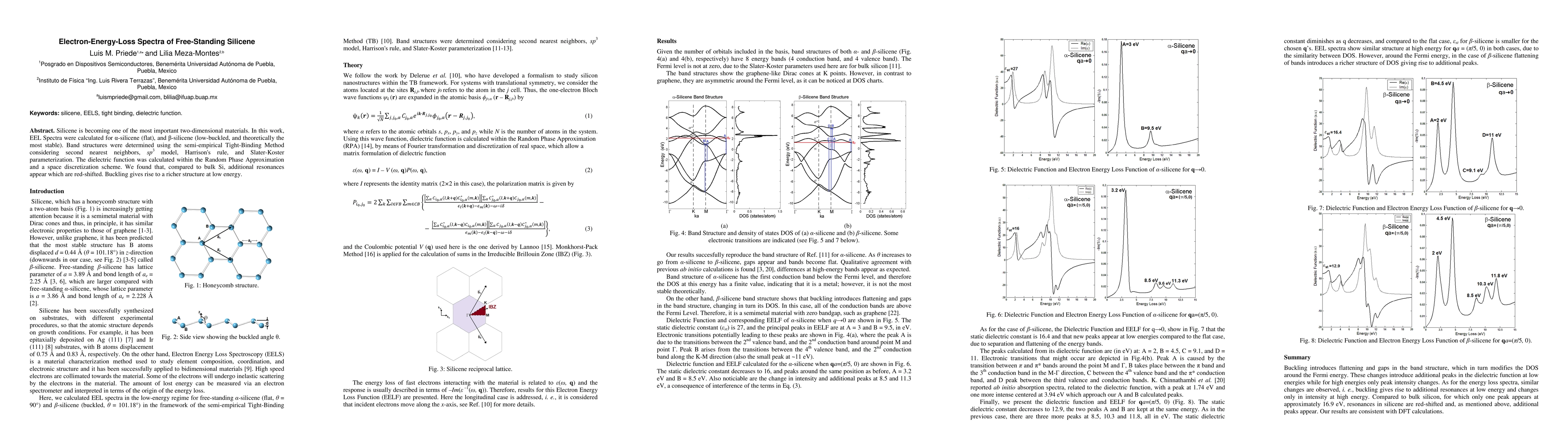 Silicene is becoming one of the most important two-dimensional materials. In this work, EEL Spectra were calculated for alfa-silicene (flat), and beta-silicene (low-buckled, and theoretically the most stable). Band structures were determined using the semi-empirical Tight-Binding Method considering second nearest neighbors, sp3 model, Harrison's rule, and Slater-Koster parameterization. The dielectric function was calculated within the Random Phase Approximation and a space discretization scheme. We found that, compared to bulk Si, additional resonances appear which are red-shifted. Buckling gives rise to a richer structure at low energy.