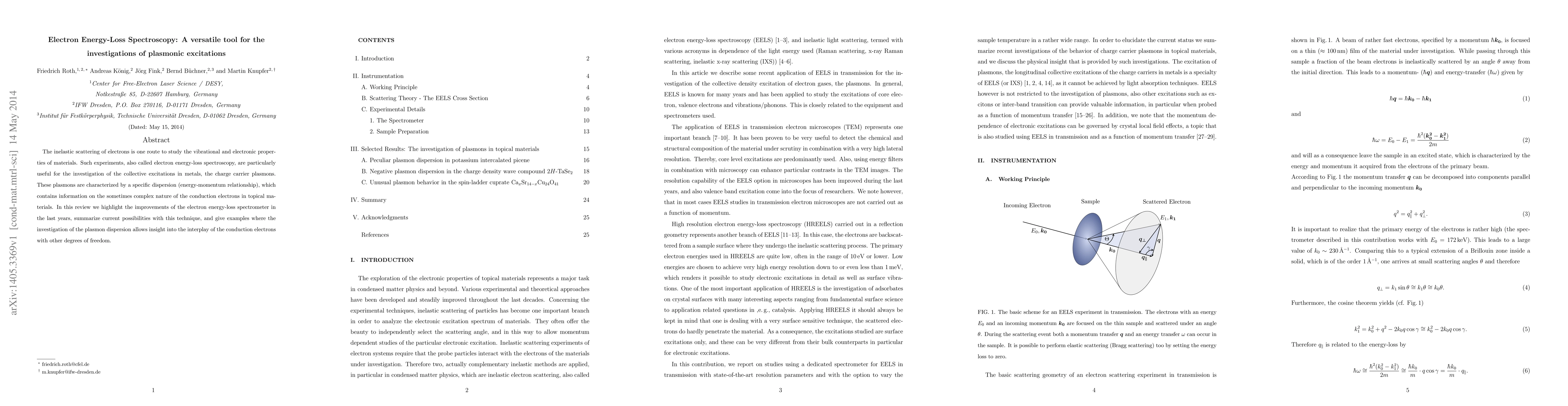 The inelastic scattering of electrons is one route to study the vibrational and electronic properties of materials. Such experiments, also called electron energy-loss spectroscopy, are particularly useful for the investigation of the collective excitations in metals, the charge carrier plasmons. These plasmons are characterized by a specific dispersion (energy-momentum relationship), which contains information on the sometimes complex nature of the conduction electrons in topical materials. In this review we highlight the improvements of the electron energy-loss spectrometer in the last years, summarize current possibilities with this technique, and give examples where the investigation of the plasmon dispersion allows insight into the interplay of the conduction electrons with other degrees of freedom.