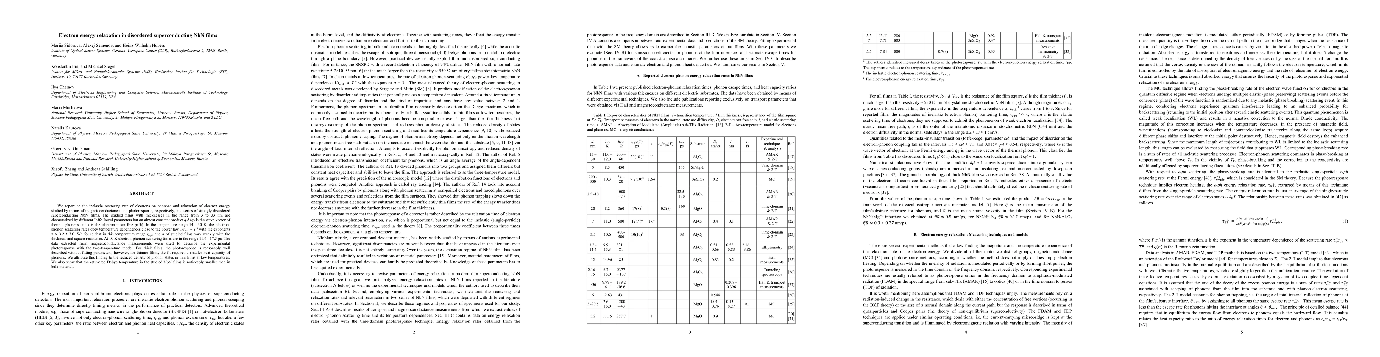 Researchers studied electron energy relaxation in disordered superconducting NbN films, finding that electron-phonon scattering rates follow a power-law temperature dependency and vary weakly with film thickness.