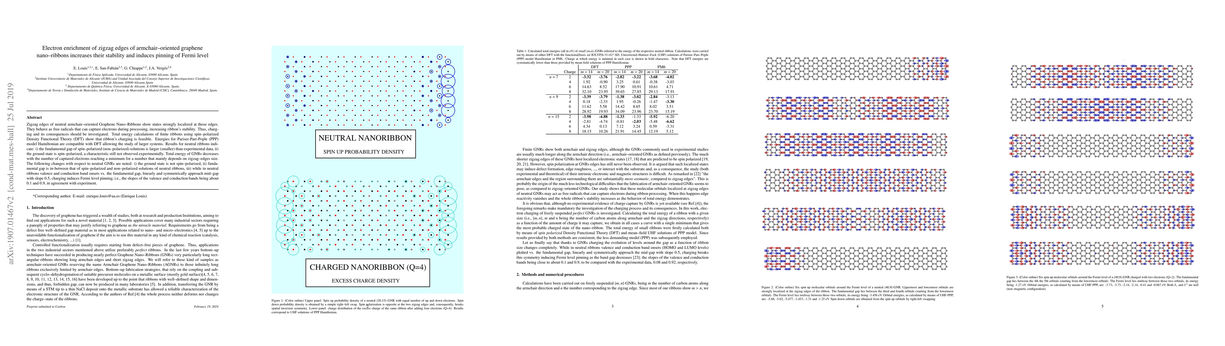 This study investigates how electron enrichment of zigzag edges in armchair-oriented graphene nano-ribbons enhances their stability and induces Fermi level pinning. Density Functional Theory calculations show that capturing electrons at zigzag edges reduces the total energy and alters electronic properties, including the fundamental gap and the Fermi level alignment.