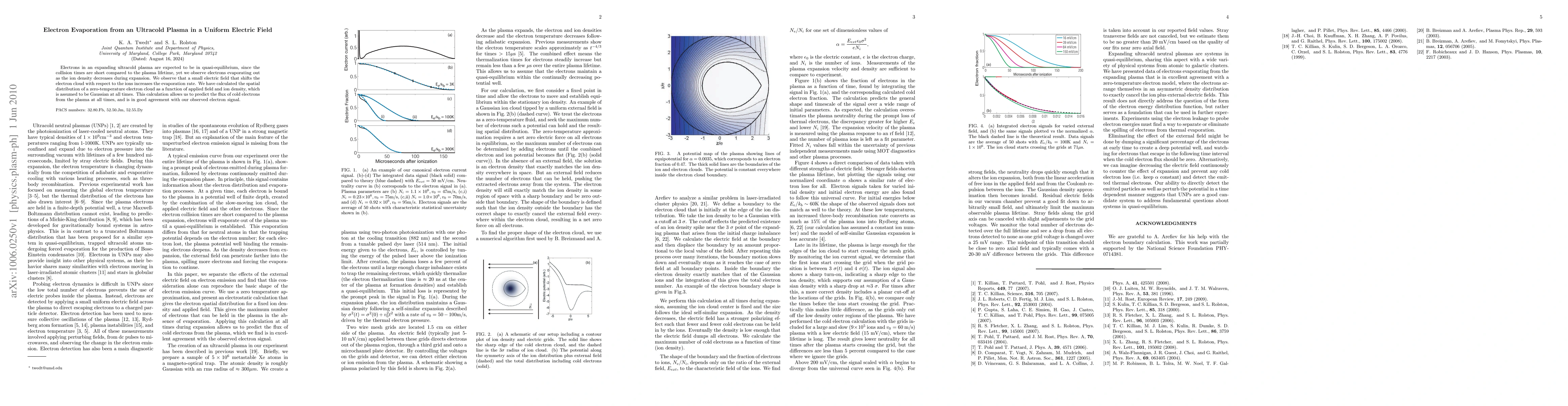 This paper investigates electron evaporation from an ultracold plasma under a uniform electric field, finding that decreasing ion density and a small electric field increase the evaporation rate. The study calculates the spatial distribution of the electron cloud, predicting the flux of cold electrons in agreement with observations.