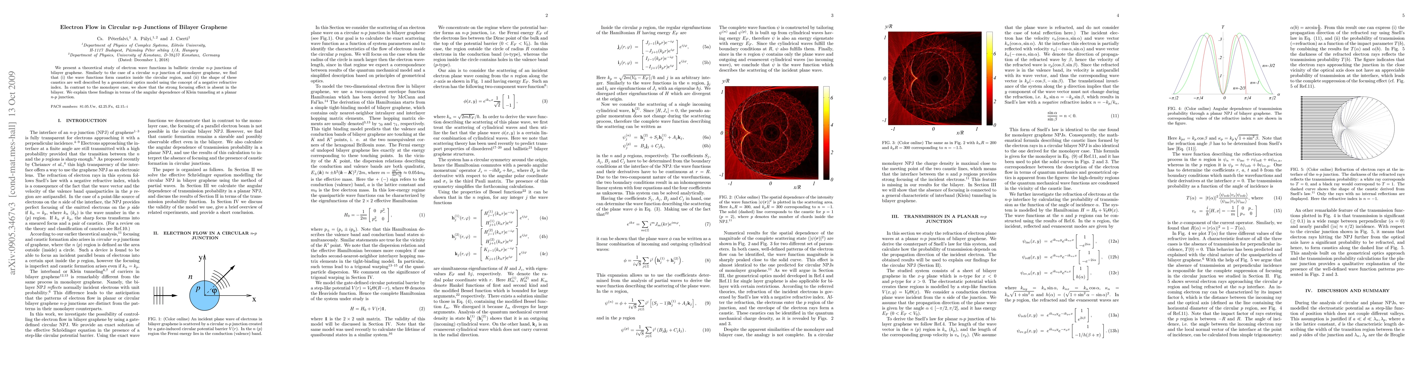 This paper studies electron wave functions in circular n-p junctions of bilayer graphene, finding caustic formations similar to monolayer graphene but without the strong focusing effect due to differences in Klein tunneling. The caustic shapes are well described by a geometrical optics model involving a negative refractive index.