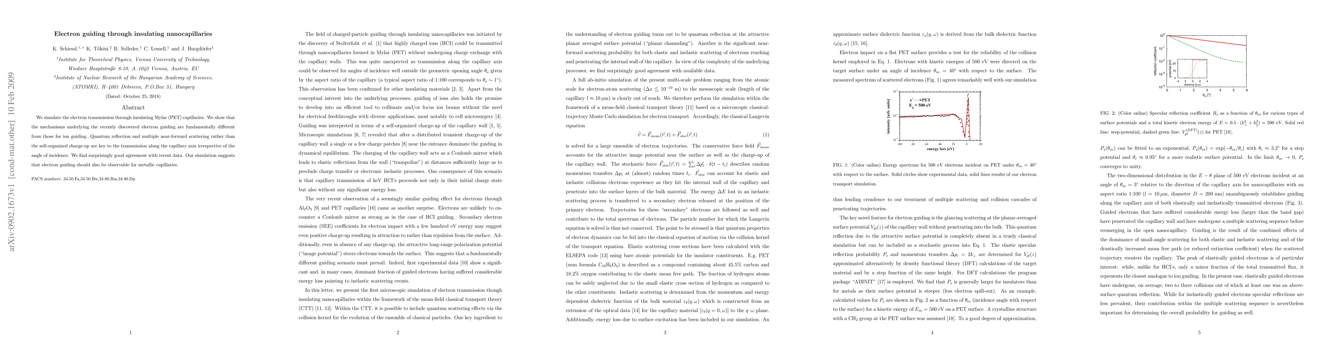 Researchers simulate electron transmission through insulating nanocapillaries, finding that quantum reflection and near-forward scattering, not charge-up, facilitate guiding of electrons; this suggests the phenomenon may also occur in metallic capillaries.