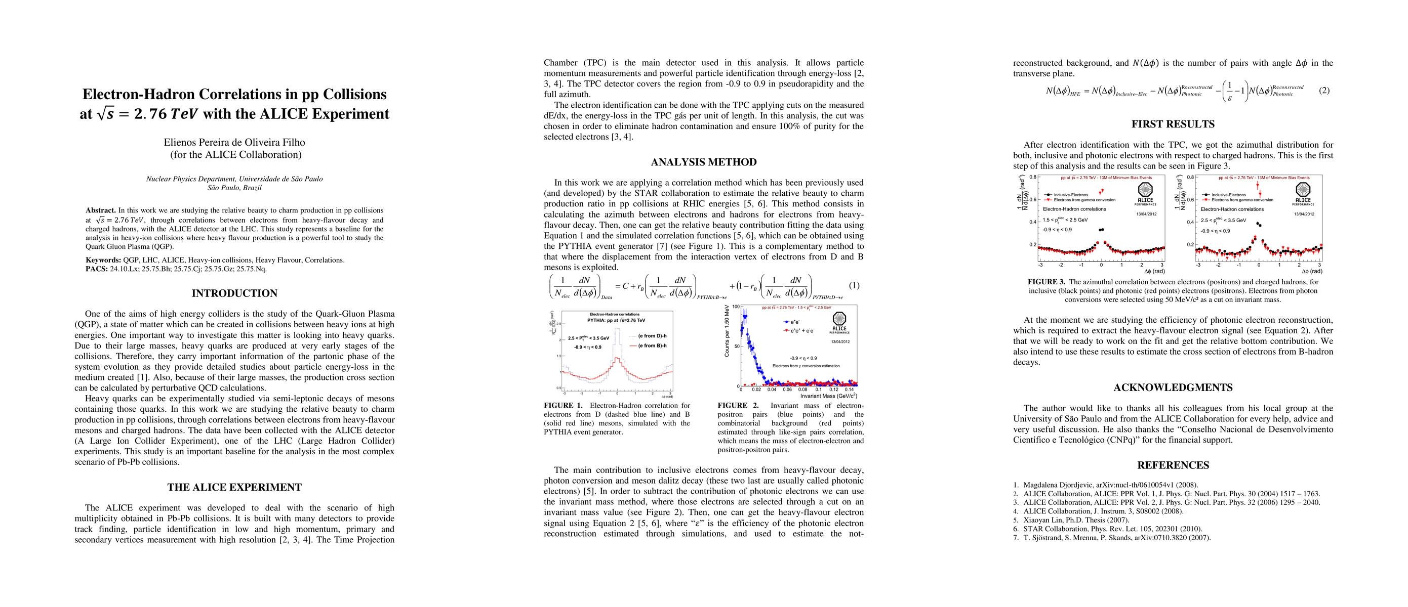 This paper investigates the relative production rates of beauty and charm quarks in proton-proton collisions at 2.76 TeV using the ALICE detector, focusing on electron-hadron correlations from heavy-flavour decays. The findings provide a baseline for future heavy-ion collision studies to probe the Quark Gluon Plasma.
