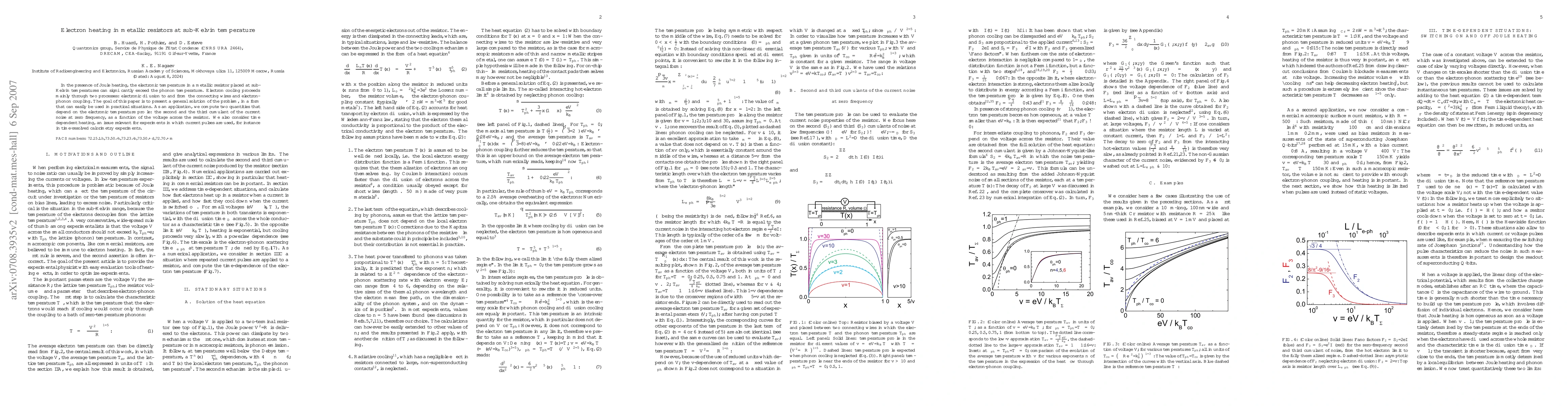 This paper investigates electron heating in metallic resistors at sub-Kelvin temperatures, where electron temperature can surpass phonon temperature due to Joule heating. It provides a general solution for electron cooling processes and computes current noise cumulants, while also addressing time-dependent heating relevant for pulsed current experiments.