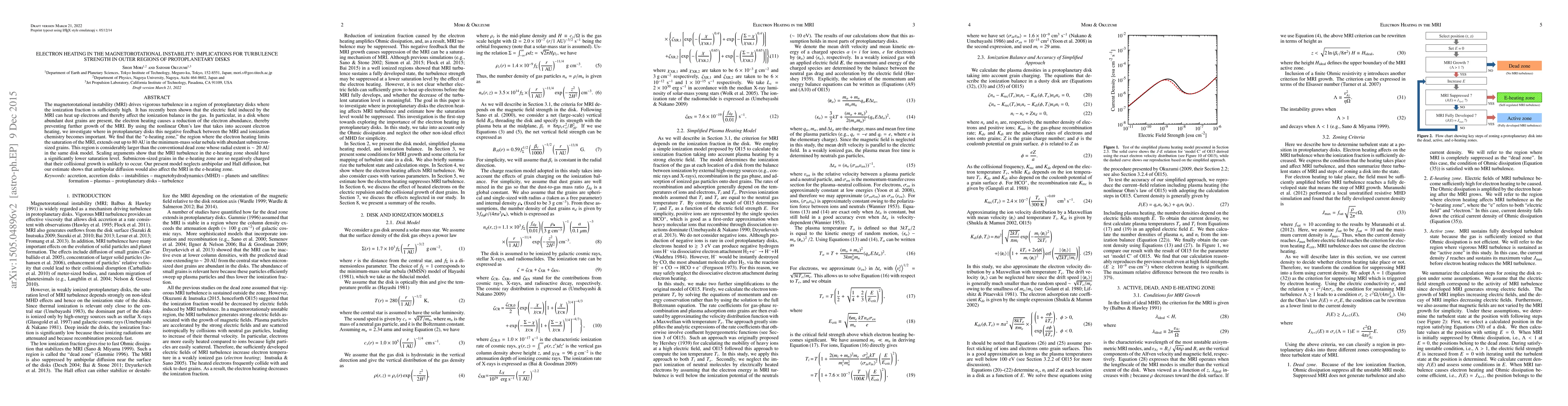 This paper investigates how electron heating from the magnetorotational instability (MRI) influences turbulence in outer regions of protoplanetary disks. The study finds that electron heating reduces the MRI's saturation level, creating a "e-heating zone" extending up to 80 AU, significantly larger than the conventional dead zone, and affecting the dynamics of submicron-sized grains.