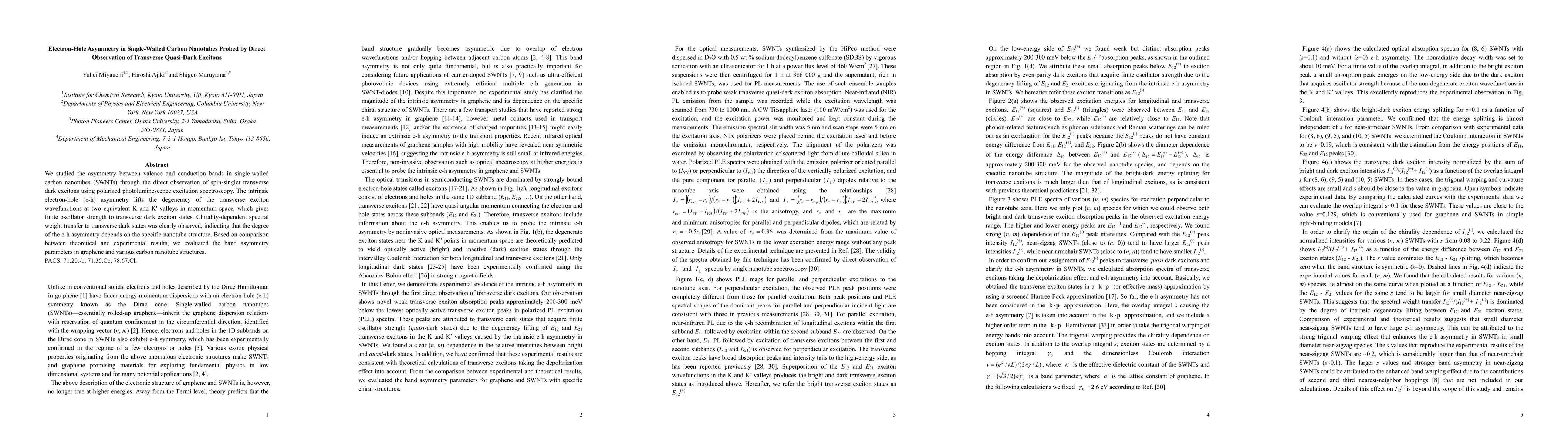 This research investigates the electron-hole asymmetry in single-walled carbon nanotubes (SWNTs) via the observation of spin-singlet transverse dark excitons using polarized photoluminescence excitation spectroscopy. The study reveals a chirality-dependent spectral weight transfer to transverse dark states, indicating varying degrees of electron-hole asymmetry based on the nanotube structure.