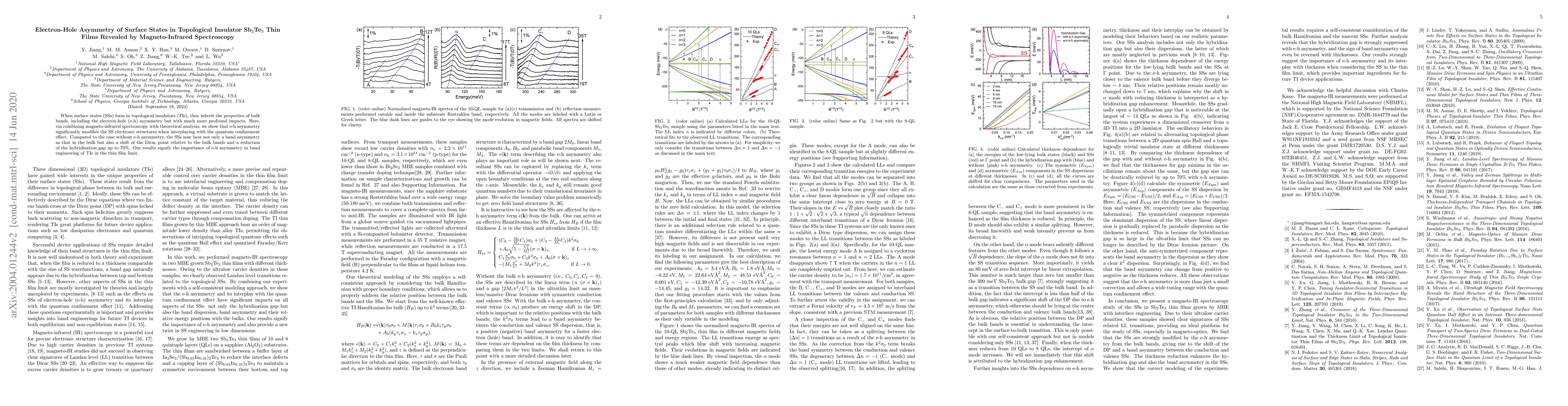 This study reveals that electron-hole asymmetry significantly alters the electronic structures of surface states in topological insulator Sb2Te3 thin films, as shown by magneto-infrared spectroscopy. The asymmetry induces a shift in the Dirac point and reduces the hybridization gap by up to 70%, highlighting its critical role in band engineering of topological insulators.