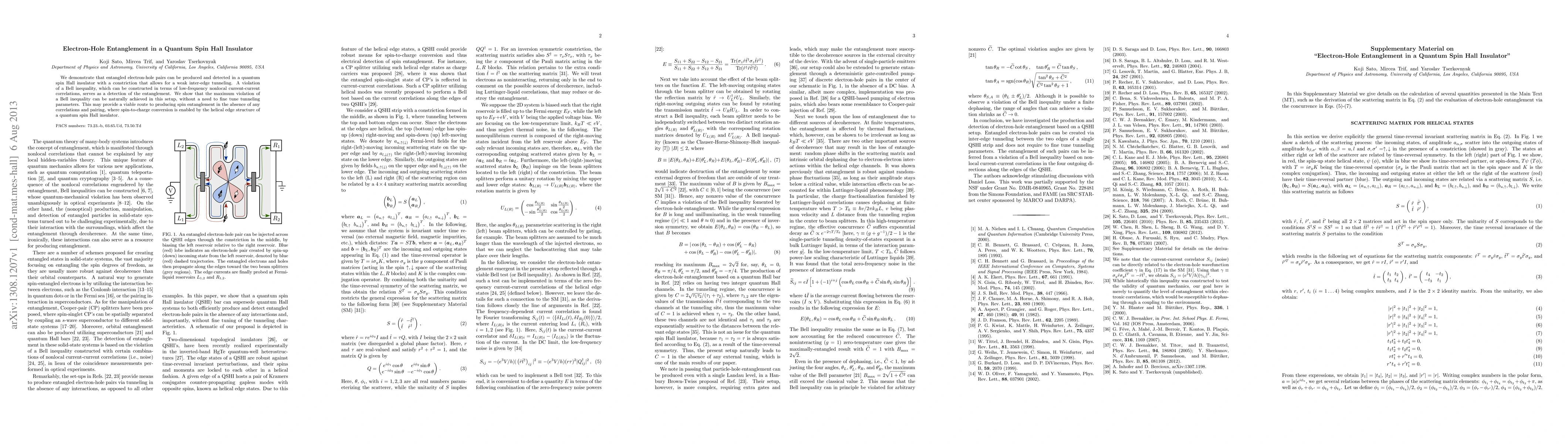 This paper demonstrates the production and detection of entangled electron-hole pairs in a quantum spin Hall insulator with inter-edge tunneling, using a Bell inequality violation as a measure. The study shows that maximum entanglement can be achieved naturally without fine-tuning parameters, suggesting a method for generating spin entanglement in a helical edge structure.