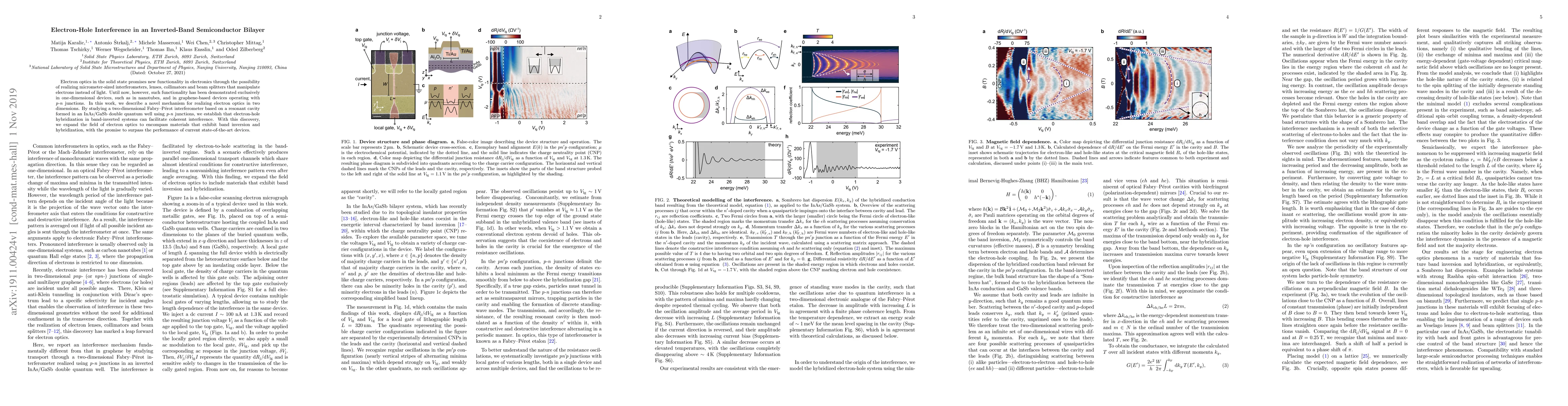 Electron optics in the solid state promises new functionality in electronics through the possibility of realizing micrometer-sized interferometers, lenses, collimators and beam splitters that manipulate electrons instead of light. Until now, however, such functionality has been demonstrated exclusively in one-dimensional devices, such as in nanotubes, and in graphene-based devices operating with p-n junctions. In this work, we describe a novel mechanism for realizing electron optics in two dimensions. By studying a two-dimensional Fabry-P\'{e}rot interferometer based on a resonant cavity formed in an InAs/GaSb double quantum well using p-n junctions, we establish that electron-hole hybridization in band-inverted systems can facilitate coherent interference. With this discovery, we expand the field of electron optics to encompass materials that exhibit band inversion and hybridization, with the promise to surpass the performance of current state-of-the-art devices.