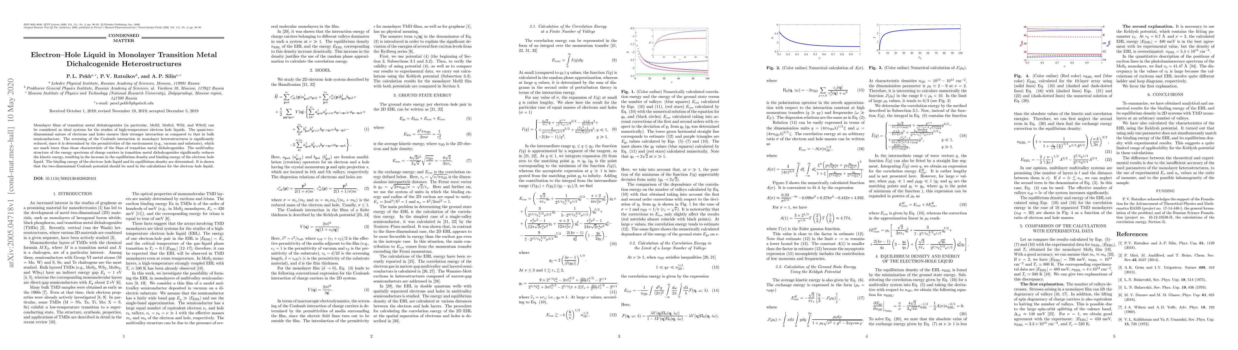 Monolayer films of transition metal dichalcogenides (in particular, MoS2, MoSe2, WS2, and WSe2) can be considered as ideal systems for the studies of high-temperature electron-hole liquids. The quasi-two-dimensional nature of electrons and holes ensures their stronger interaction as compared to that in bulk semiconductors. The screening of the Coulomb interaction in monolayer heterostructures is significantly reduced, since it is determined by the permittivities of the environment (e.g., vacuum and substrate), which are much lower than those characteristic of the films of transition metal dichalcogenides. The multivalley structure of the energy spectrum of charge carriers in transition metal dichalcogenides significantly reduces the kinetic energy, resulting in the increase in the equilibrium density and binding energy of the electron-hole liquid. The binding energy of the electron-hole liquid and its equilibrium density are determined. It is shown that the two-dimensional Coulomb potential should be used in the calculations for the electron-hole liquid.