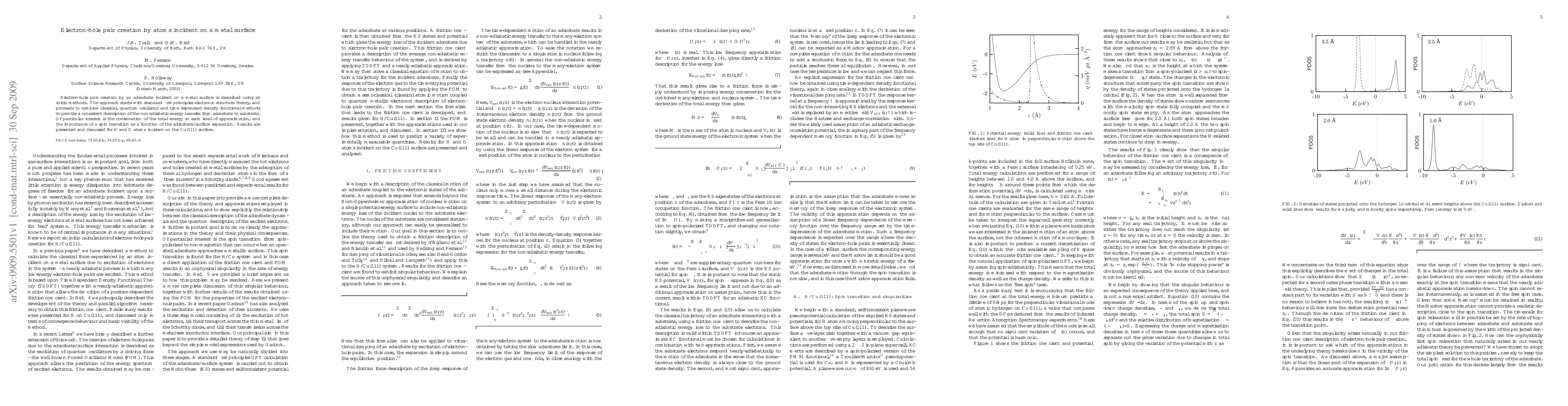 This paper uses \textit{ab initio} methods to describe electron-hole pair creation when atoms like H and D collide with a Cu(111) metal surface, combining electronic structure theory, classical, quantum oscillator, and time-dependent density functional methods to analyze non-adiabatic energy transfer and the role of spin transition during the interaction.