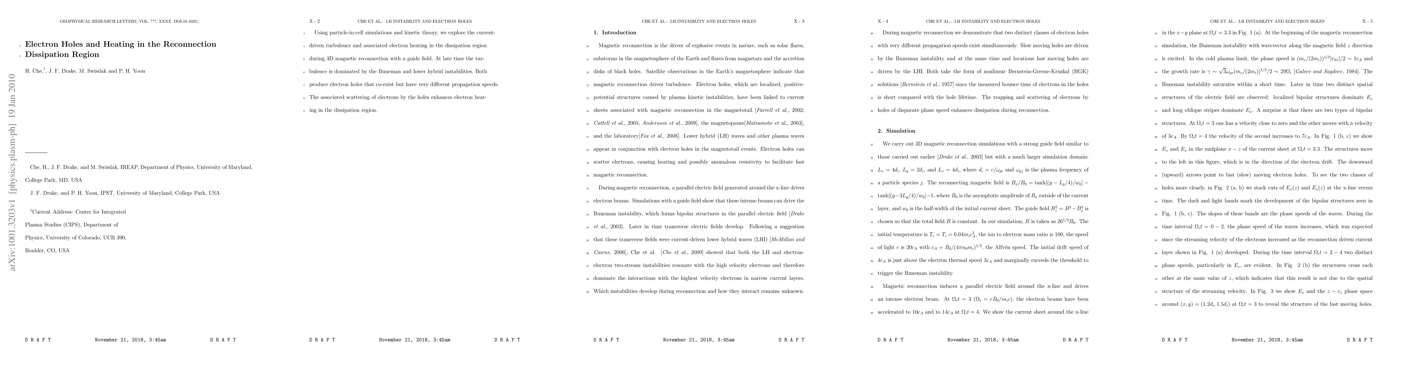 Using particle-in-cell simulations and kinetic theory, we explore the current-driven turbulence and associated electron heating in the dissipation region during 3D magnetic reconnection with a guide field. At late time the turbulence is dominated by the Buneman and lower hybrid instabilities. Both produce electron holes that co-exist but have very different propagation speeds. The associated scattering of electrons by the holes enhances electron heating in the dissipation region.