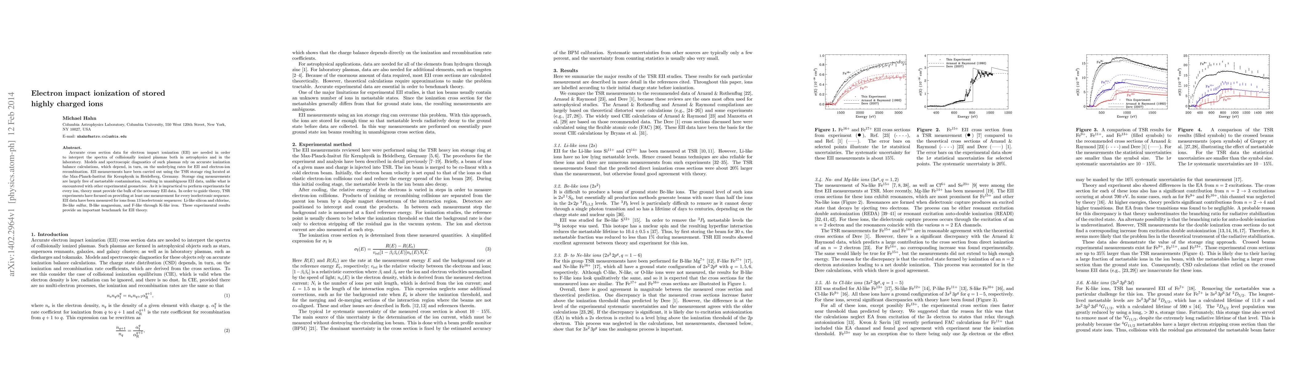 This paper reports electron impact ionization cross section measurements for various highly charged ions using the TSR storage ring, providing crucial data for interpreting spectra in astrophysical and laboratory plasmas. The results serve as benchmarks for theoretical models, guiding future calculations for electron impact ionization.