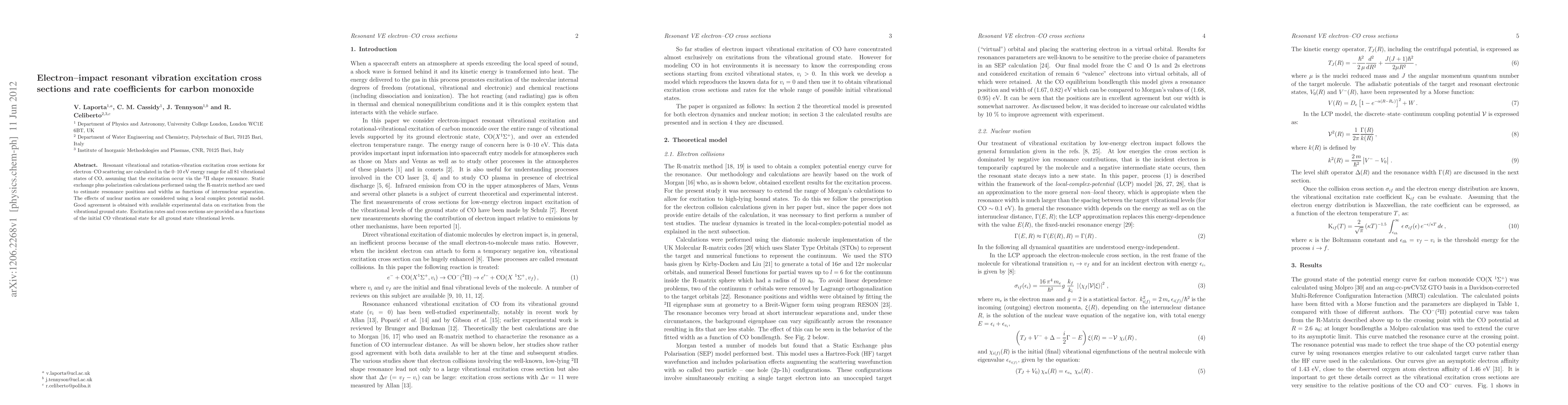 This paper calculates electron-impact resonant vibrational excitation cross sections for all 81 CO vibrational states in the 0-10 eV energy range, using static exchange plus polarization R-matrix methods. The study provides excitation rates and cross sections as functions of initial CO vibrational states, showing good agreement with experimental data.